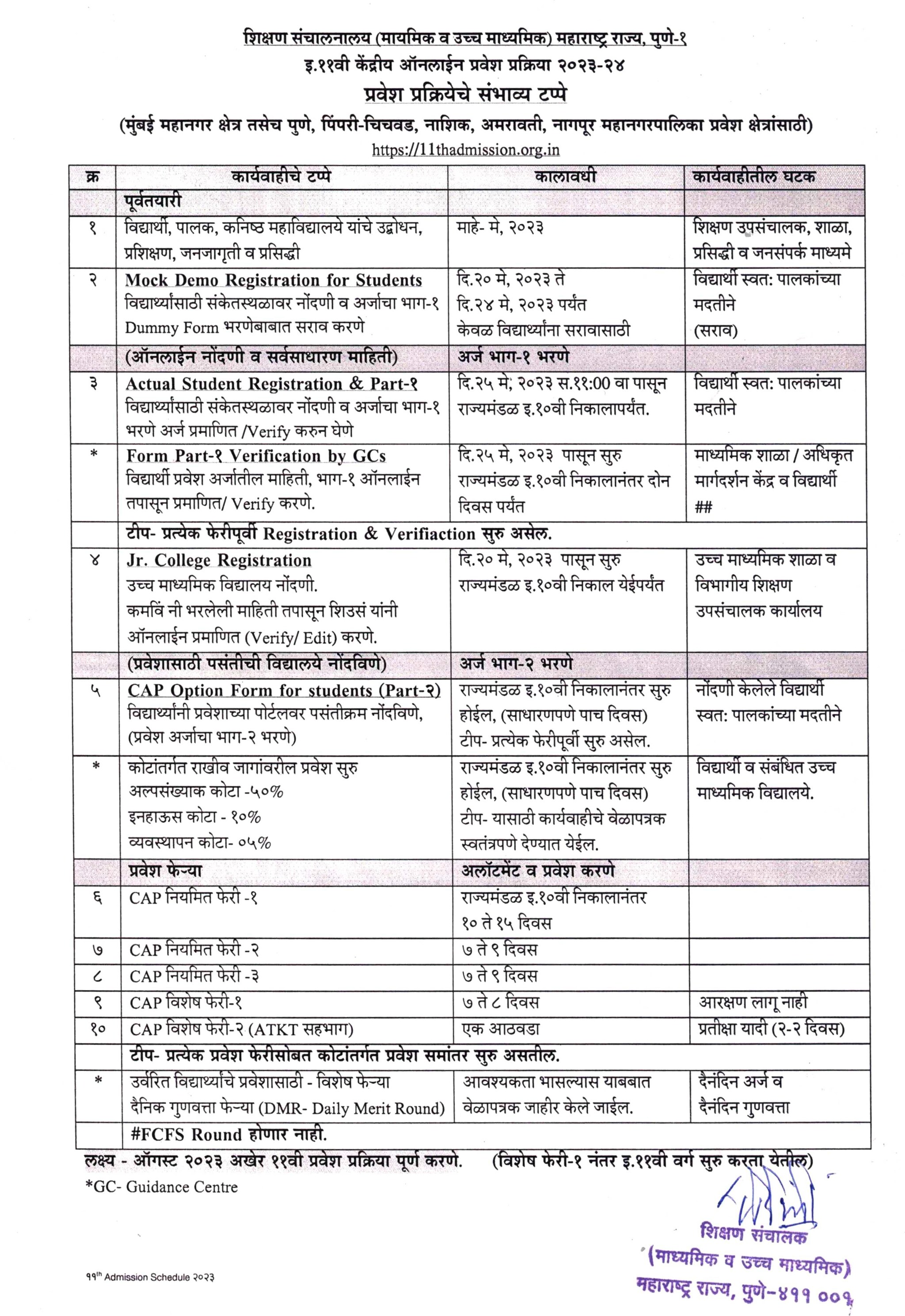 11वी प्रवेश प्रक्रियेचं ऑनलाईन वेळापत्रक जाहीर