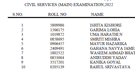 इशिता किशोरने यंदा अव्वल स्थान पटकावले आहे. यानंतर गरिमा लोहियाला दुसरे तर उमा हर्थीला तिसरे स्थान मिळाले आहे. UPSC कडून टॉपर विद्यार्थ्यांची यादी जाहीर करण्यात आली आहे. काय सांगता! आता टीव्हीवरील प्रोग्राम बघूनही क्रॅक करता येईल UPSC परीक्षा? ‘हे’ कार्यक्रम मिस करूच नका असा चेक करा निकाल याप्रमाणे UPSC IAS निकाल पहा UPSC च्या अधिकृत वेबसाइट upsc.gov.in वर जा. मुख्यपृष्ठावर दिलेल्या UPSC 2022 अंतिम निकालाच्या लिंकवर क्लिक करा. परिणाम तुमच्या स्क्रीनवर दिसेल. आता रोल नंबरच्या मदतीने तपासा.