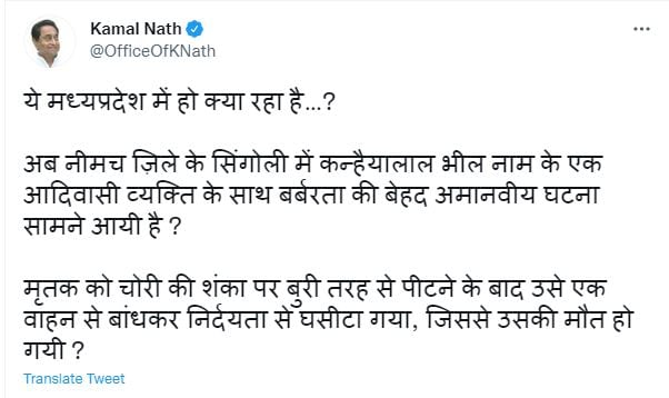 मिळालेल्या माहितीनुसार, चोरीच्या संशयावरुन आदिवासी तरुणाला इतक्या क्रूर पद्धतीने मारहाण करण्यात आली होती. त्याला इतकं मारलं की यात त्याचा मृत्यू झाला. या घटनेनंतर काँग्रेसकडून निशाणा साधला जात आहे.