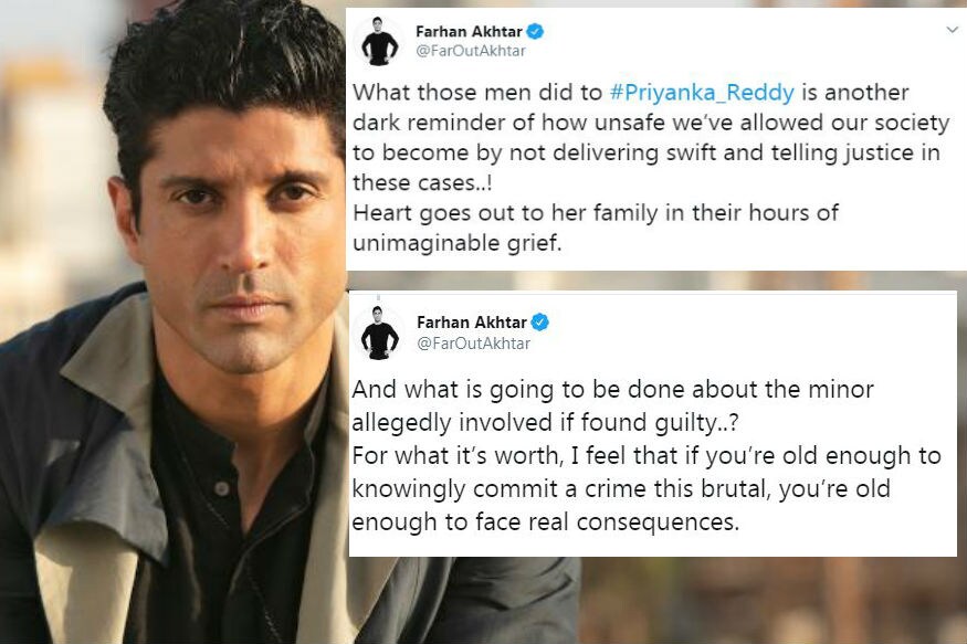 अभिनेता फरहान अख्तरनं लिहिलं, त्या लोकांनी महिला डॉक्टरसोबत जे केलं ती गोष्ट आपल्याला याची आठवण करुन देते की याआधी अशा घटनांबाबत आपण लगेचच सुनावणी आणि न्याय मिळवून न दिल्यानं आपल्या सोसायटीला आपणच अशाप्रकारे असुरक्षित केलं आहे. या दुःखद घटनेत मी त्यांच्या कुटुंबासोबत आहे.