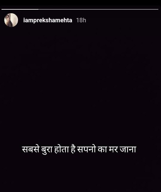 प्रेक्षा आपल्या घरी परतल्यानंतर मागच्या काही दिवसांपासून डिप्रेशनमध्ये होती. सोमवारी रात्री ती जेव्हा तिच्या रुममध्ये गेली तेव्हा काही वेळ ती तिचा फोन वापरत राहिली. त्यानंतर तिनं इन्स्टाग्राम स्टोरीवर एक निराशजनक स्टेटस अपलोड केलं होतं. ज्यात तिनं लिहिलं, ‘सर्वात वाईट असतं ते म्हणजे तुमची स्वप्न मरून जाणं’ सकाळी जेव्हा प्रेक्षाचे बाबा तिला उठवायला तिच्या रुममध्ये गेले त्यावेळी त्यांनी तिचा मृतदेह लटकलेल्या अवस्थेत आढळून आला. त्यांनी तिला लगेच रुग्णालयात नेलं मात्र डॉक्टरांनी तिला मृत घोषित केलं. प्रेक्षाला अभिनेत्री व्हायचं असल्यानं ती मुंबईत आली होती मात्र लॉकडाऊन केल्यानंतर ती तिच्या घरी परतली. त्यानंतर लॉकडाऊन वाढत गेलं आणि आता आपल्याला पुढे काम मिळणार नाही या भावनेनं ती डिप्रेशनमध्ये जात होती आणि डिप्रेशनमध्येच तिनं हे धक्कादायक पाऊल उचलल्याचं तिच्या कुटुंबीयांचं म्हणणं आहे. दरम्यान पोलीस तपासात तिची कोणतीही सुसाइड नोट आढळून आली नाही.