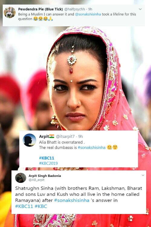 या सर्व गोंधळात सोनाक्षी सोशल मीडियावर तर ट्रोल झालीच त्यानंतर अमिताभ बच्चन यांनीही तिची शाळा घेतली. सोनाक्षीच्या वडीलांचं नाव शत्रुघ्न आहे. तिच्या काकांची नावं राम, लक्ष्मण आणि भरत आहेत. एवढंच नाही तर त्यांच्या घराचं नावही रामायण अशा तसेच तिच्या दोन्ही भावांची नावंही लव आण कुश अशी आहेत. मग सोनाक्षी या प्रश्नाचं उत्तर देऊ शकली नाही असं अमिताभ यांनी म्हटलं. रामायणातील प्रश्नावर सोनाक्षीचं अजब उत्तर, सोशल मीडियावर लोकांनी उडवली खिल्ली ============================================================ VIDEO: मोदींच्या वक्तव्यावर शिवसेना खासदार संजय राऊत यांचा पलटवार, म्हणाले…