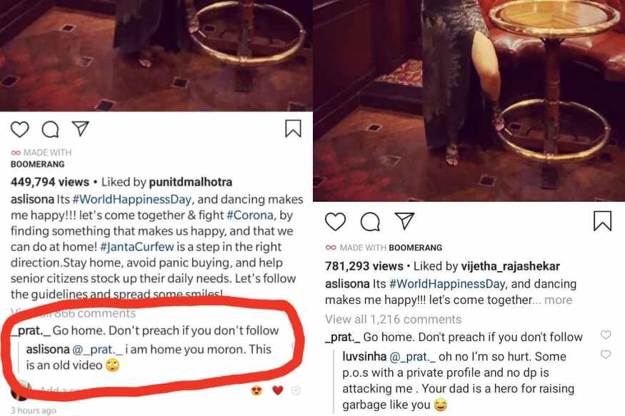खरं तर सोनाक्षीनं या व्हिडीओतून घरी राहा, पार्टी-इव्हेंटमध्ये सहभागी होऊ नका. असा सल्ला दिला आहे मात्र तिच्या या व्हिडीओवरुन तिलाच ट्रोल करण्यात आलं आहे. एक युजरनं लिहिलं, जर तूया सर्व गोष्टींचं पालन करत नाहीस तर मग आम्हाला उपदेश देऊ नकोस. ट्रोलर्सनी सोनाक्षीला एवढं त्रास दिला की तिला स्वतःहून त्यांना उत्तर द्यावं लागलं. तिनं कमेंटमध्ये लिहिलं, मी घरीच आहे, मूर्खा, हा व्हिडीओ खूप जुना आहे. याशिवाय सोनाक्षीच्या या पोस्टवर तिचा भाऊ सुद्धा अनेकांना उत्तर देताना दिसला. मात्र यावरुन लव सिन्हाला सुद्धा पर्सनली ट्रोल करण्यात आलं आहे.