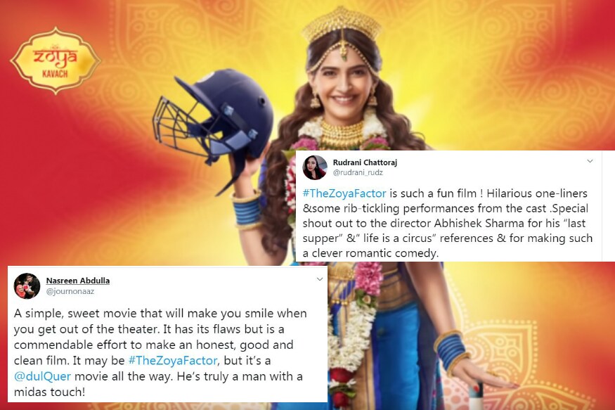 दुसऱ्या एका युजरनं लिहिलं, #TheZoyaFactor हा एक गंमतीदार सिनेमा आहे. कास्ट परफॉरमन्स खूप चांगला आहे. बरेच संवाद खूप विनोदी आहे. ज्यामुळे तुम्ही पोट धरून हसता. अभिषेक वर्माचा हा सिनेमा खरंच कौतुकास पात्र आहे. तर आणखी एका युजरनं लिहिलं, स्वतःसाठी काही चांगलं करावंस वाटत असे तर या विकेंडला #TheZoyaFactor पाहा. मी ट्रेंड अॅनालिस्ट नसले तरी हा सिनेमा बॉक्स ऑफिसवर चांगली कमाई करेल हे मी सांगू शकते. या सिनेमाचे रिव्ह्यू पाहून तरी हा सिनेमा प्रेक्षकांच्या पसंतीत उतरल्याचं दिसत आहे. …आणि सैफ अली खान चक्क स्वतःच्याच घरचा पत्ता विसरला! ========================================================= VIDEO : ‘सगळे सण एकत्र आले’, खिचडीवाल्या ‘करोडपती’ बबिता ताडेंशी खास बातचीत