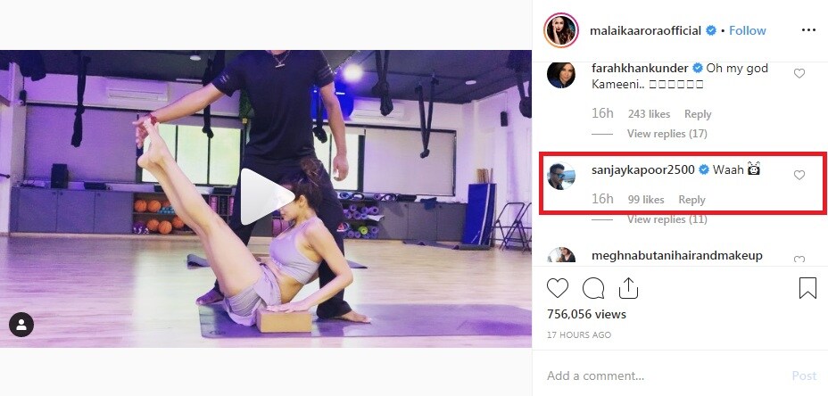 मलायकाच्या या व्हिडीओवर अनेक बॉलिवूड सेलिब्रेटींनी कमेंट केल्या आहेत. फराह खाननं लिहिलं, ‘ओह माय गॉड कमीनी…’ पण अर्जुन कपूरचा काका अभिनेता संजय कपूरच्या कमेंटनं सर्वांचच लक्ष वेधून घेतलं आहे. संजयनं लिहिलं, ‘वाह..!!’ मलायका अरोरा अर्जुन कपूरच्या कुटुंबीयांच्या खूप जवळची व्यक्ती बनली आहे. खास करुन संजय कपूर आणि त्याच्या फॅमिलीसोबत काही दिवसांपूर्वी तर हे सर्वजण एकत्र व्हेकेशन एंजॉय करताना दिसले होते.