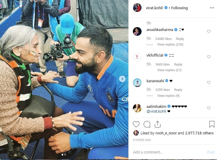सामना संपल्यानंतर विराटने आजींसोबतचे फोटो शेअर करत म्हटलं की, ‘एवढ्या प्रेमासाठी आणि पाठिंब्यासाठी सगळ्या चाहत्यांचे त्यातही खासकरून चारुलता पटेल यांचे आभार. चारुलता यांचं वय ८७ वर्ष आहे आणि मी त्यांच्यापेक्षा जास्त पॅशनेट आणि क्रिकेटप्रेमी चाहता आजपर्यंत पाहिला नाही.’