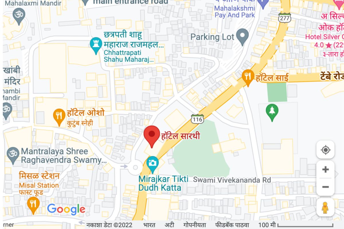 हॉटेलचा पत्ता : पहिला मजला, ईगल प्राईड, मिरजकर तिकटी, कोल्हापूर - 416001 संपर्क (संदीप सुर्यवंशी) : +919423801522