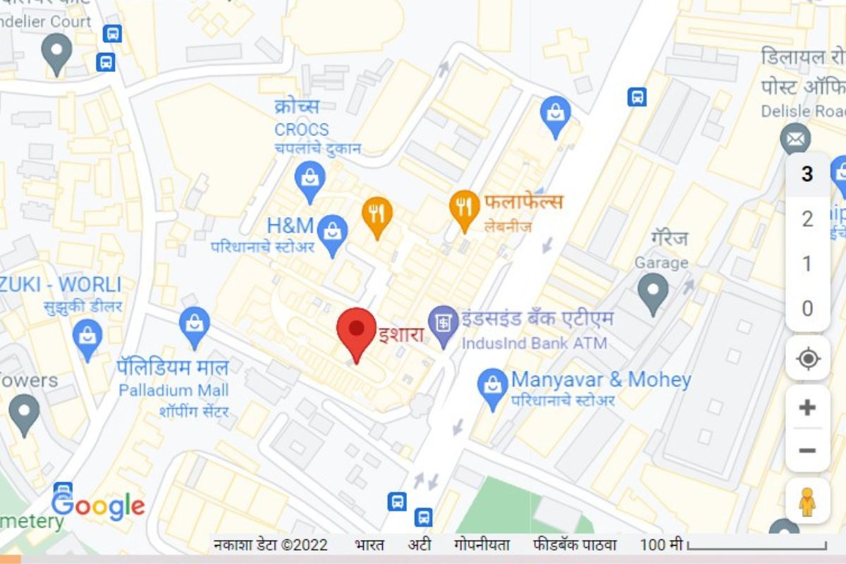 इशारा हॉटेलचा पत्ता तिसरा मजला 462, फिनोक्स प्लॅडियम मॉल, सेनापती बापट रोड, लोअर परळ मुंबई, 400013 फोन नंबर - 086575, 31988