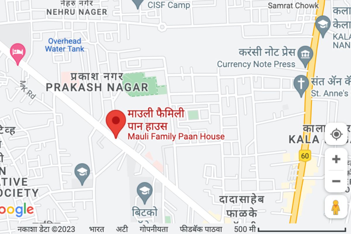 गूगल मॅपवरून साभार कुठे आहे माऊली फॅमिली पान हाऊस? नाशिक शहरापासून साधारणता 10 किलोमीटर अंतरावर मखमलाबाद दरी-मातोरी रोडला माऊली फॅमिली पान हाऊस आहे.