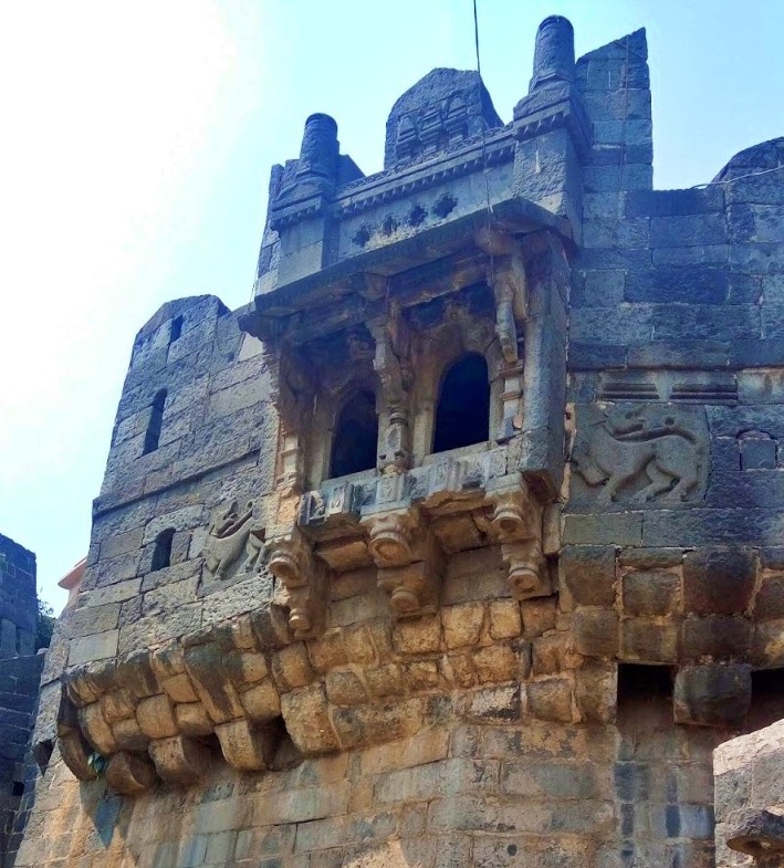 काढता घालता येईल असा पूल किल्ल्याला अनेक ठिकाणी दुहेरी तटबंदी आहे. संपूर्ण किल्ल्याच्या सभोवती खंदक खोदलेला आहे. गडाच्या ईशान्य दिशेला प्रवेश करण्यासाठी पूल बांधलेला आहे. वेळप्रसंगी तो काढूनही ठेवता येईल अशी सोय केलेली आहे. गडाचे पहिले प्रवेशव्दार खूप भव्य आहे. त्याची लाकडी दारे आजही टिकून आहेत. पूलावरुन चालत गेल्यावर थेट पहिल्या प्रवेशव्दारातच आपण शिरतो. पहिल्या प्रवेशव्दारातून आत शिरल्यावर डावीकडे वळल्यावर दुसरे प्रवेशव्दार लागते. किल्ल्याच्या उत्तरेस ईशान्य बाजूस खंदकावरून आत प्रवेश करण्यासाठी पूल बांधलेला असुन पुर्वीच्या काळी हा पूल लाकडी असून काढता घालता येत असे त्यामुळे हा पूल नसताना किल्ल्यांत प्रवेश करणे शक्य नसे. गडाचा पहिला दरवाजा खुप मोठा आहे. हेही वाचा-