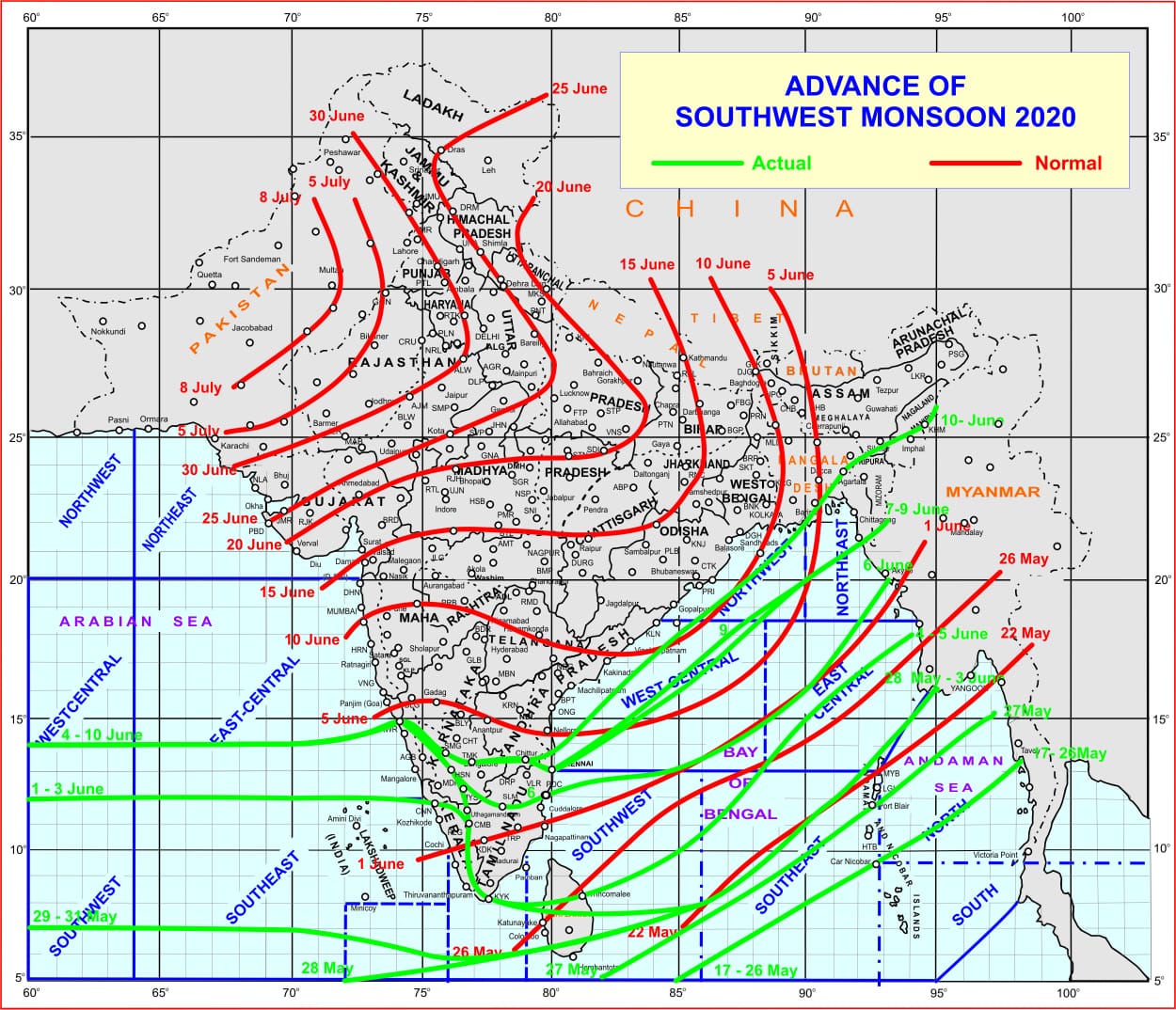 1 जून केरळमध्ये आगमन 4 जून कर्नाटकात दाखल, पण चक्रीवादळाने पुढचा प्रवास थांबला येत्या 48 तासात राज्यात मान्सूनचं आगमन पुण्यात 12 तारखेपासून मान्सूनचा पाऊस मुंबईत 13 तारखेपासून मान्सूनचा पाऊस 15 तारखेपर्यंत मान्सून संपूर्ण महाराष्ट्र व्यापणार अन्य बातम्या