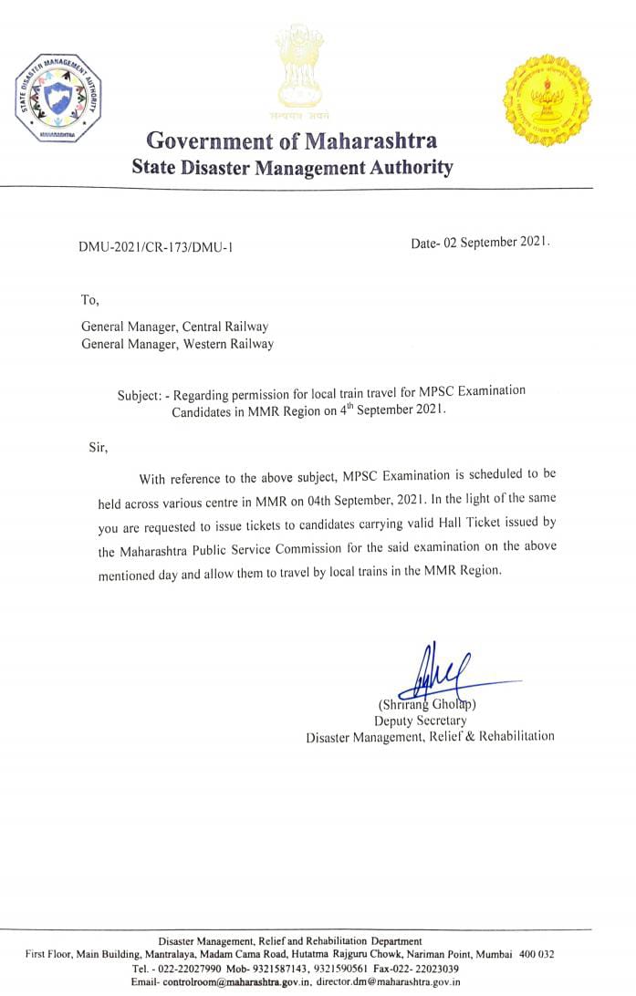 आशिष शेलार ट्विट ॲान रेल्वे प्रवास ४ सप्टेंबर रोजी एमपीएससी परीक्षा आहे. यासंदर्भात मुंबई उपनगरातील विद्यार्थ्यांनी माझ्याकडे रेल्वे प्रवास करण्याकरता तिकिट मिळावे हि विनंती केली. या विनंती संदर्भात मी रेल्वे राज्यम्त्री रावसाहेब दानवे यांच्याशी संवाद साधला. त्यांनी सकारात्मक प्रतिसाद दिला असून राज्य सरकारच्या प्रस्ताव येणे गरजेच असल्याच म्हटलं आहे. या संदर्भात मुख्य सचिव सिताराम कुंटे यांना हा विषय लक्षात आणून दिला.