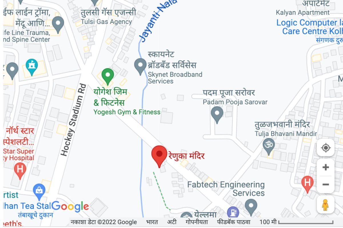 मंदिराचा पत्ता : ओढ्यावरील रेणुका मंदिर, दत्त कॉलनी, मंगळवार पेठ, कोल्हापूर - 416001