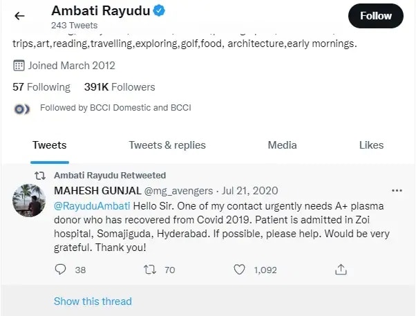 मुंबई, 14 मे : चेन्नई सुपर किंग्जचा (CSK) धडाकेबाज फलंदाज अंबाती रायडू याच्या एका ट्विटने चाहते शॉक झाले. अंबाती रायडू (Ambati Rayudu) याने ट्विट करून या आयपीएल हंगामानंतर या स्पर्धेतून निवृत्ती घेणार असल्याची घोषणा केली होती. मात्र, अवघ्या दोन तासांतच त्यांनी आपल्या विधानावर यु टर्न घेत निवृत्तीबाबत केलेले ट्विट डिलीट केले. आता रायुडूने निवृत्तीचे ट्विट का केले आणि नंतर डिलीट का केले? असा प्रश्न उपस्थित होत आहे. या ट्विटनंतर चेन्नई सुपर किंग्जमध्ये सर्व काही ठीक चालले आहे का? रायुडूने निवृत्तीबद्दल ट्विट केले होते, जे नंतर डिलीट करण्यात आले. रायडूने लिहिले, “मी आनंदाने जाहीर करतो की हा माझा शेवटचा आयपीएल हंगाम असेल. मी गेल्या 13 वर्षांत दोन महान संघांसोबत राहिलो. या अद्भुत प्रवासासाठी मी मुंबई इंडियन्स आणि चेन्नई सुपर किंग्जचे आभार मानू इच्छितो." 2019 मध्येही असाच यू टर्न रायुडू 2018 पासून चेन्नई सुपर किंग्जमध्ये होता. यादरम्यान, त्याने 2018 आणि 2021 मध्ये CSK सोबत जेतेपदही जिंकले. क्रिकइन्फोच्या मते, रायुडूच्या निवृत्तीच्या ट्विटनंतर चेन्नई सुपर किंग्ज व्यवस्थापनाने त्याच्याशी संवाद साधला. यानंतर फलंदाजाने त्याचे ट्विट डिलीट केले. रायुडूने निवृत्तीचा निर्णय मागे घेण्याची ही पहिलीच वेळ नाही. 2019 मध्ये, विश्वचषक संघात निवड न झाल्यानंतरही त्याने सर्व फॉरमॅटमधून निवृत्ती जाहीर केली. पण, नंतर यू-टर्न घेतला आणि देशांतर्गत आणि आयपीएल क्रिकेटमध्ये परतला. देशाची लोकसंख्या 30 हजार, पण या पठ्ठ्यांनी T20 क्रिकेटमध्ये केला वर्ल्ड रेकॉर्ड! रायुडू हा आयपीएलचा दुसरा सर्वात यशस्वी खेळाडू रायुडू हा आयपीएलमधील टॉप 10 सर्वात अनुभवी क्रिकेटपटूंमध्ये मोडतो. पाच विजेतेपदांसह तो दुसरा सर्वात यशस्वी आयपीएल क्रिकेटर आहे. केवळ रोहित शर्मा (सहा) याच्याकडे त्याच्यापेक्षा जास्त आयपीएल जेतेपदे आहेत. त्याचे पाच आयपीएल जेतेपद (किरॉन पोलार्डसह) संयुक्त-दुसरे आहेत.