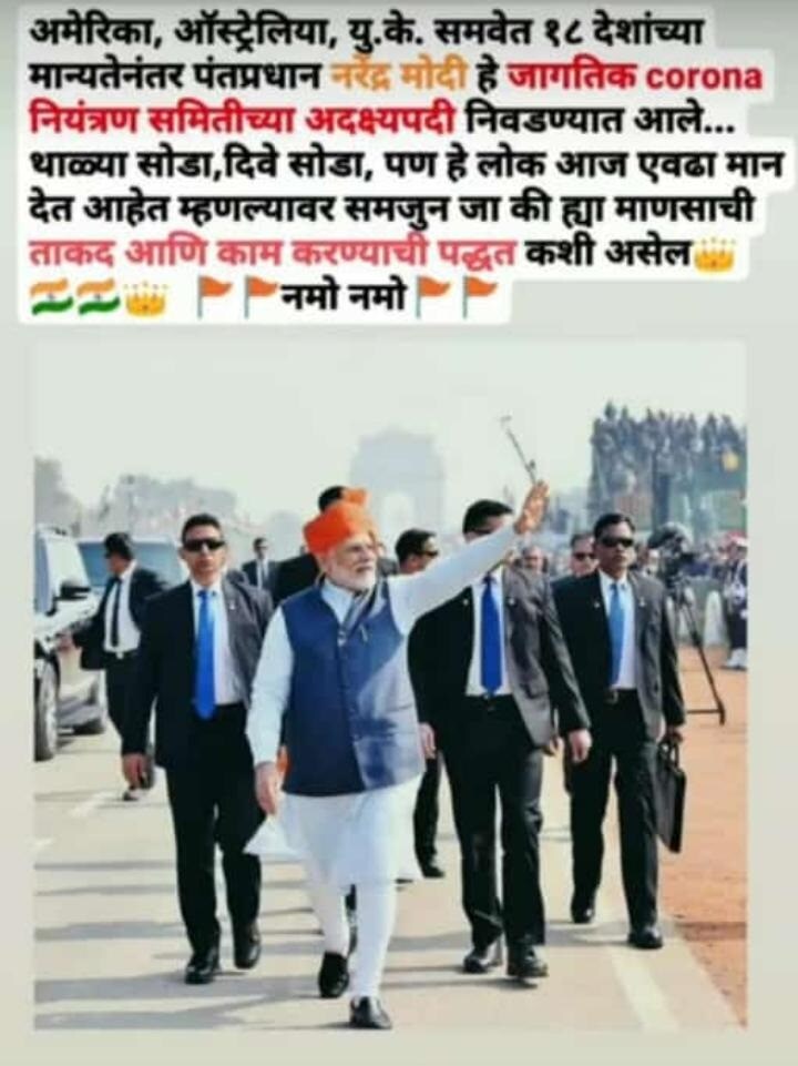 मुंबई, 08 एप्रिल : सध्याच्या घडीला जग कोरोना व्हायरसशी लढत आहे. यासाठी सर्वच राष्ट्रे एकमेकांना सहकार्य करत आहेत. कोरोनामुळे मृतांचा आकडा जगभरात 80 हजारांवर पोहोचला आहे. चीन, इटली, स्पेन यांच्यानंतर आता अमेरिकेत कोरोनाने हाहाकार उडाला आहे. जगातून अशी धक्कादायक माहिती येत असतानाच सोशल मीडियावर अफवासुद्धा अनेक पसरत आहेत. त्यात आता WION न्यूजचा एक व्हिडिओ व्हायरल होत आहे. त्या व्हिडिओवरून असा दावा केला जात आहे की, कोरोनाच्या लढ्यामध्ये जागतिक स्तरावर स्थापन करण्यात आलेल्या समितीचे अध्यक्षपद भारताचे पंतप्रधान नरेंद्र मोदींकडे देण्यात आलं आहे. यामध्ये एकूण 18 राष्ट्रांच्या नेत्यांचा समावेश आहे असाही दावा केला जात आहे. महाराष्ट्र भाजपचे चिटणीस अतुल भाटखालकर यांनी WION न्यूजचा व्हिडिओ शेअर करत ही अभिमानाची गोष्ट असल्याचं म्हटलं आहे. त्यांच्यानंतर मनिपूरच्या मुख्यमंत्र्यांचे सल्लागार रजस सेठी यांनीही व्हिडिओ शेअर केला आहे. अतुल भाटखालकर म्हटलं की, जागतिक नेते ट्रम्प, बोरिस जॉन्सन, स्कॉट मॉरिसन यांना वाटतं की पंतप्रधान मोदींनी या लढ्यात पुढाकार घ्यावा.