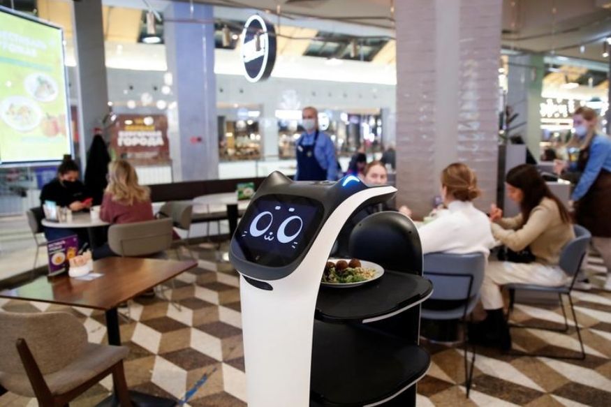 5 नोव्हेंबर 2020 ला काढलेल्या या फोटोत रशियाच्या मॉस्कोमधील रेस्टोरंटमध्ये रोबो वेटरचे काम करताना दिसून येत आहे. कोरोना व्हायरसच्या पार्श्वभूमीवर योग्य अंतर राखत सर्व्हिस करण्यासाठी रोबोचा वापर करण्यात आला आहे. REUTERS/Maxim Shemetov