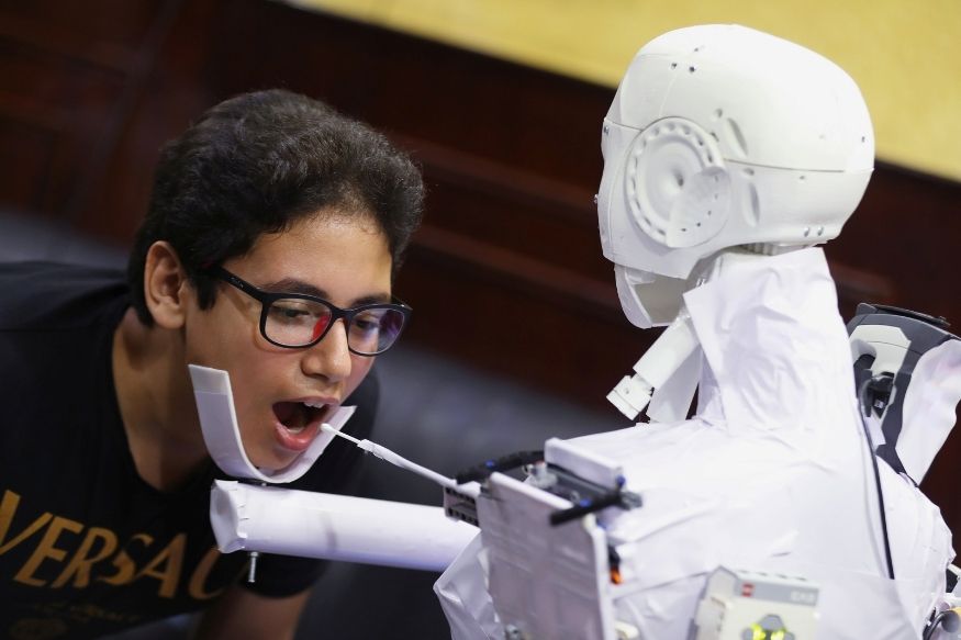 इजिप्तच्या कैरोमध्ये घेतलेल्या या फोटोमध्ये रोबो कोरोनाची PCR चाचणी करताना दिसून येत आहे. ईजिप्तमधील 26 वर्षीय मॅकेनिकल इंजिनिअर महमूद एल कोमी याने या रिमोट कंट्रोलवरील रोबोची निर्मिती केली आहे. (12 जून 2020- REUTERS/Mohamed Abd El Ghany)