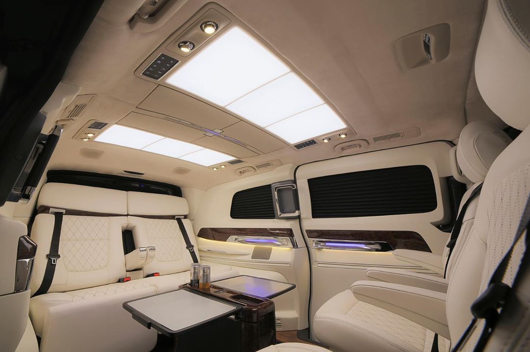 DC2 ने V-Class मध्ये Nappa लेदर अपहोल्स्ट्री, रूफ लाइटिंग, फोल्डेबल टेबल, वुडन फ्लोरिंग, मिनी फ्रिज आणि 32 इंच टीव्ही लावला आहे.