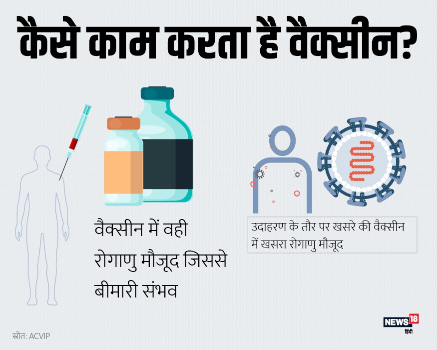 जगभरात व्हॅक्सीन 3 प्रकारे दिलं जातं. इंजेक्शन, तोंडातून काही ड्रॉप दिले जातात किंवा त्वचेवर छोटी जखम करुन. लसीकरणानंतर शरीर किटाणूंशी लढणारे जीवाणू तयार करायला सुरु करतं.