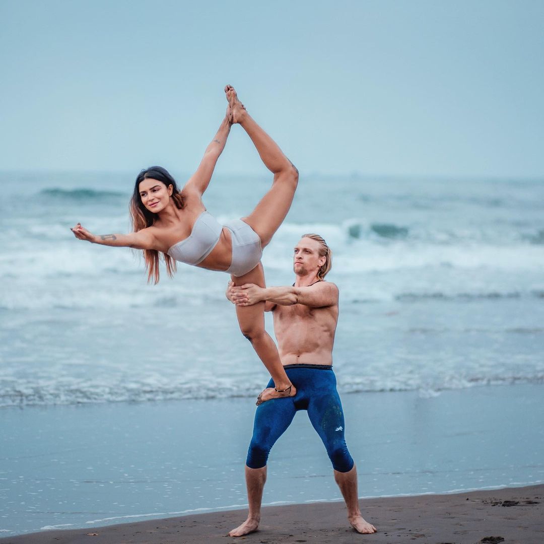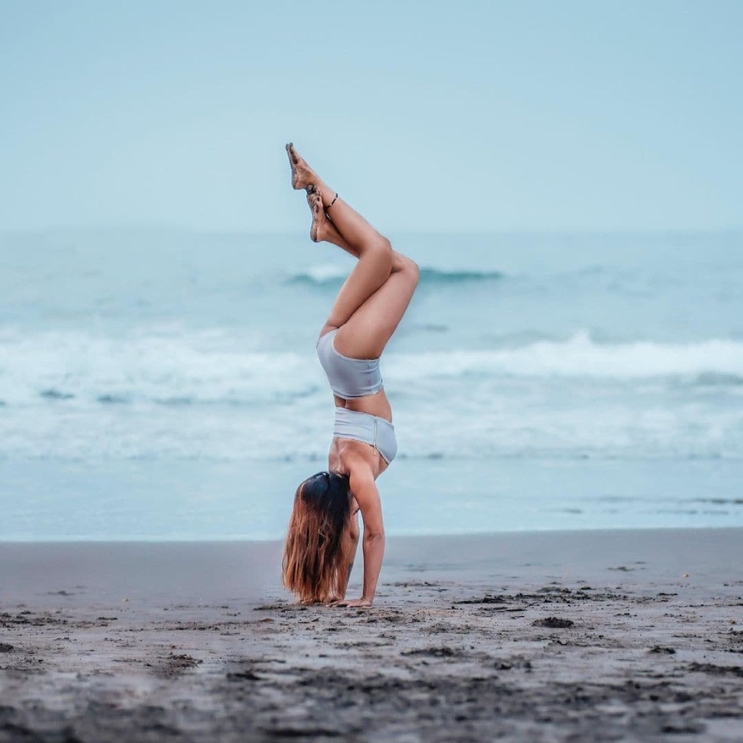 मात्र या फोटोंमध्ये ती कुठल्याही जीममध्ये नव्हे तर चक्क समुद्र किनारी व्यायाम करताना दिसत आहे. (Aashka Goradia Goble/Instagram)