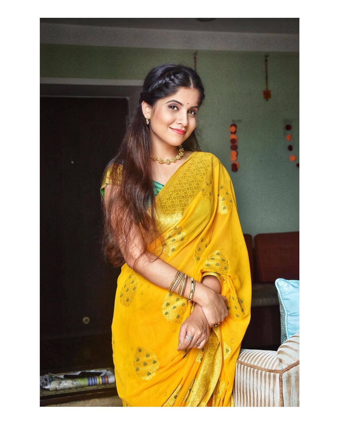 छोट्या पडद्यावरील लोकप्रिय अभिनेत्री अमृता देशमुख तिच्या लेटेस्ट फोटोशूचमध्ये अतिशय मनमोहक दिसत आहे. पाहा तिचे सुंदर फोटो. अमृता सुंदर मराठमोळ्या रुपात अगदी मनमोहक दिसत आहे. सुंदर पैठणी आणि नथ यात अमृता अगदी खुलून दिसत आहे. फ्रेशर्स या झी युवाच्या मालिकेतून अमृताला मोठी प्रसिद्धी मिळाली होती. त्यातील तिची रंजक भूमिका प्रेक्षकांना फारच आवडली होती. तुमचं आमचं सेम असतं, देवा शप्पथ या मालिकांमध्येही अमृता झळकली होती. याशिवाय स्वीटी सातारकर या चित्रपटातही ती दिसली होती. डिझायनर साडीत अमृता फारच संदर दिसत आहे. अमृता सोशल मीडियावप फार सक्रीय असते. सोशल मीडियावर तिचे अनेक फोटो ती शेअर करत असते. अमृताला तिच्या स्वीटी सातारकर चित्रपटासाठी पुरस्कारही मिळाला होता. पिवळ्या रंगाच्या साडीत ती अतिशय सुंदर दिसत आहे.