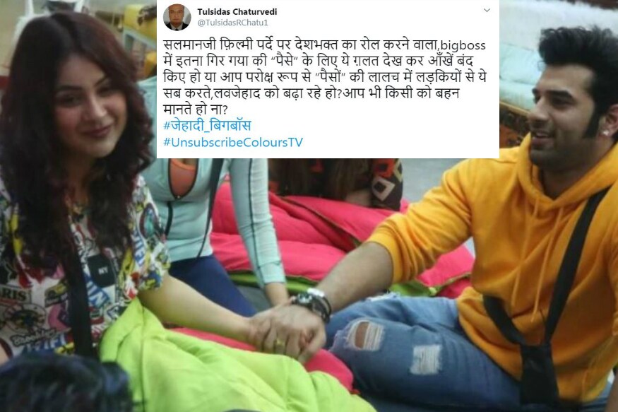 हे आहे विरोधाचं कारण या सीझनच्या सुरुवातीलाच घरात एंट्री करणाऱ्या स्पर्धकांना सलमान खाननं त्यांचा BFF कोण असणार आहे हे सांगितलं होतं. या BFF च्या संकल्पनेनुसार यावेळी एका वेळी एका बेडवर 2 व्यक्ती झोपणार आहेत. तर बिग बॉस 13 च्या सुरुवातीपासूनच मुलं आणि मुली एक बेड शेअर करत आहेत आणि प्रेक्षक बिग बॉसच्या या फॉरमॅटचा विरोध करत आहेत. यापूर्वी भाजपा नेत्यानंही केला होता विरोध बिग बॉस 13 बाबत भाजपा नेता सत्यदेव पचौरी यांनी नाराजीपूर्ण ट्वीट केलं आहे. त्यांनी लिहिलं, हे बिग बॉस नाही तर अय्याशी करणाऱ्यांचा हा अड्डा आहे. या शोला आमचा पूर्ण विरोध असून हा शो लवकरात लवकर बंद करावा. खरंतर मी यांचा अद्याप एकही एपिसोड पाहिलेला नाही. मात्र याबद्दल सगळीकडे बरंच काही बोललं जात आहे त्यातून माहिती मिळते. हे असे शो समाजात चुकीचा संदेश पोहोचवण्याचे काम करत आहे. त्यामुळे ते लगेचच बंद करण्यात यावेत. #UnsubscribeColoursTV लव्ह जिहादला प्रोत्साहन देणारा शो एका युजरनं लिहिलं, ‘सलमान खानजी सिनेमामध्ये देशभक्ताची भूमिका साकारणारा एवढा खालच्या पातळीला गेला आहे. पैशांसाठी सर्व काही चुकीच होत असलेलं दिसूनही डोळे बंद केले आहेत की, पैशाच्या लालचानं मुलींकडून अशाप्रकारच्या गोष्टी करुन घेऊन लव्ह जिहादला प्रोत्साहन देत आहात का? तुम्ही कोणाला बहिण मानता का?’