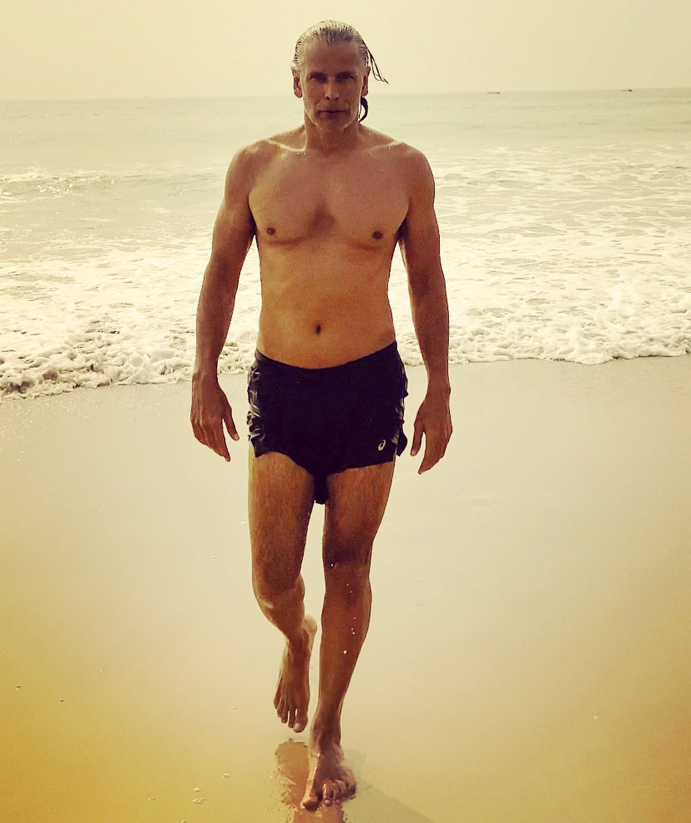 मिलिंद सतत एक्सरसाईज करताना दिसून येतो.
