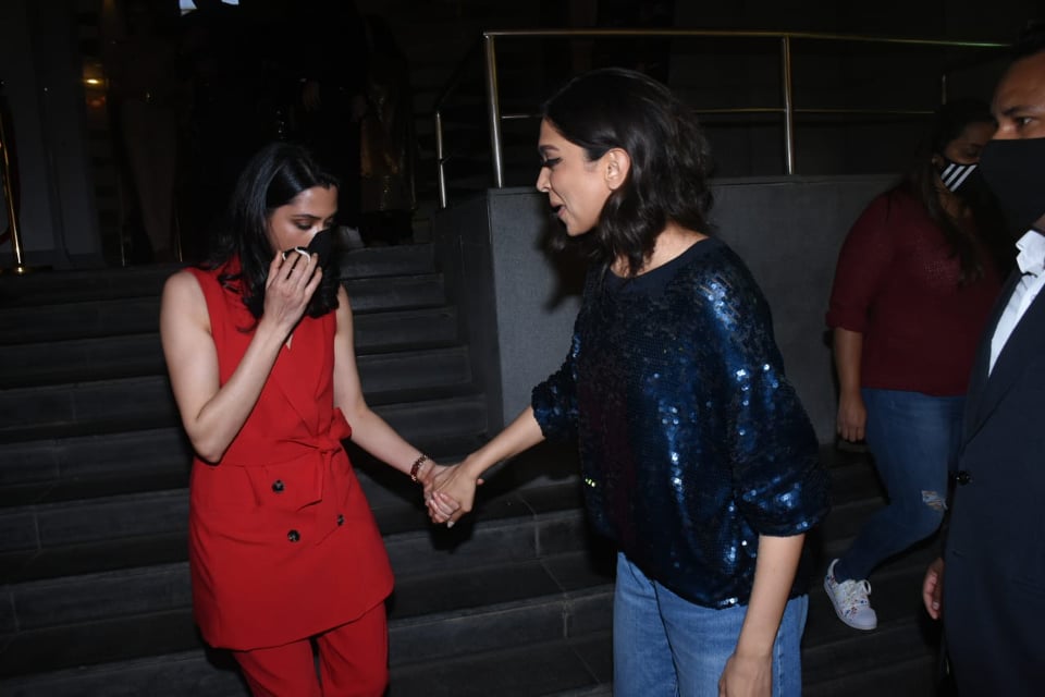 प्रीमियरच्या शेवटी दीपिका पादुकोण एका कॅज्युअल पोशाखात दिसली. ती ब्लॅक शिमरी आणि ब्लू डेनिम्समध्ये स्पॉट झाली.