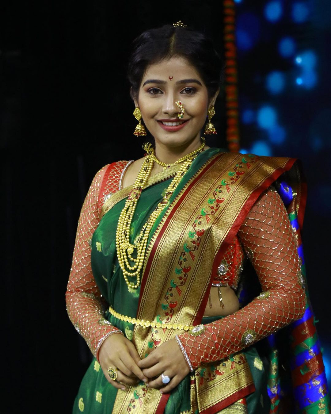 सुंदर हिरव्या साडीत अस्मिता पारंपरिक लुकमध्ये दिसत आहे.
