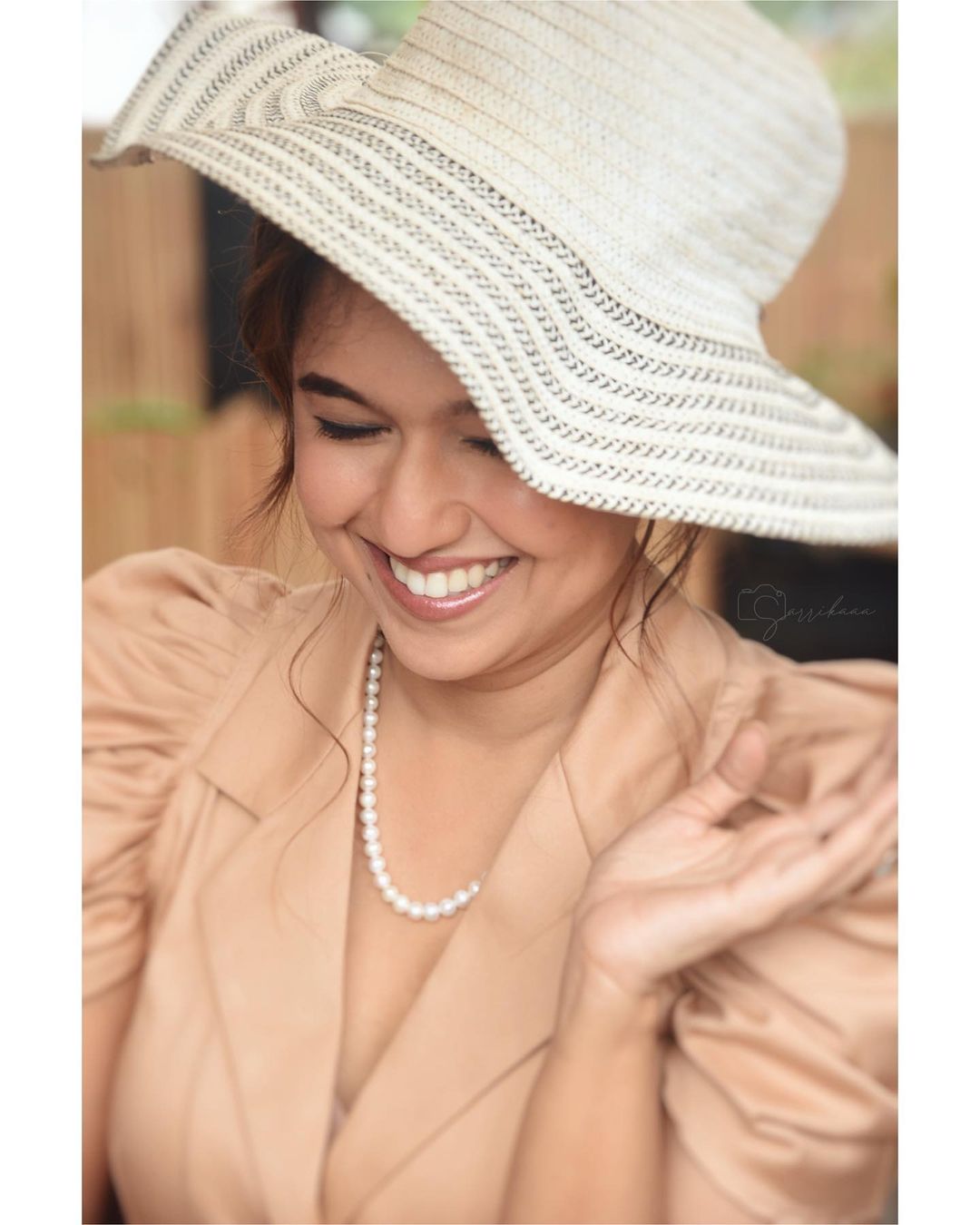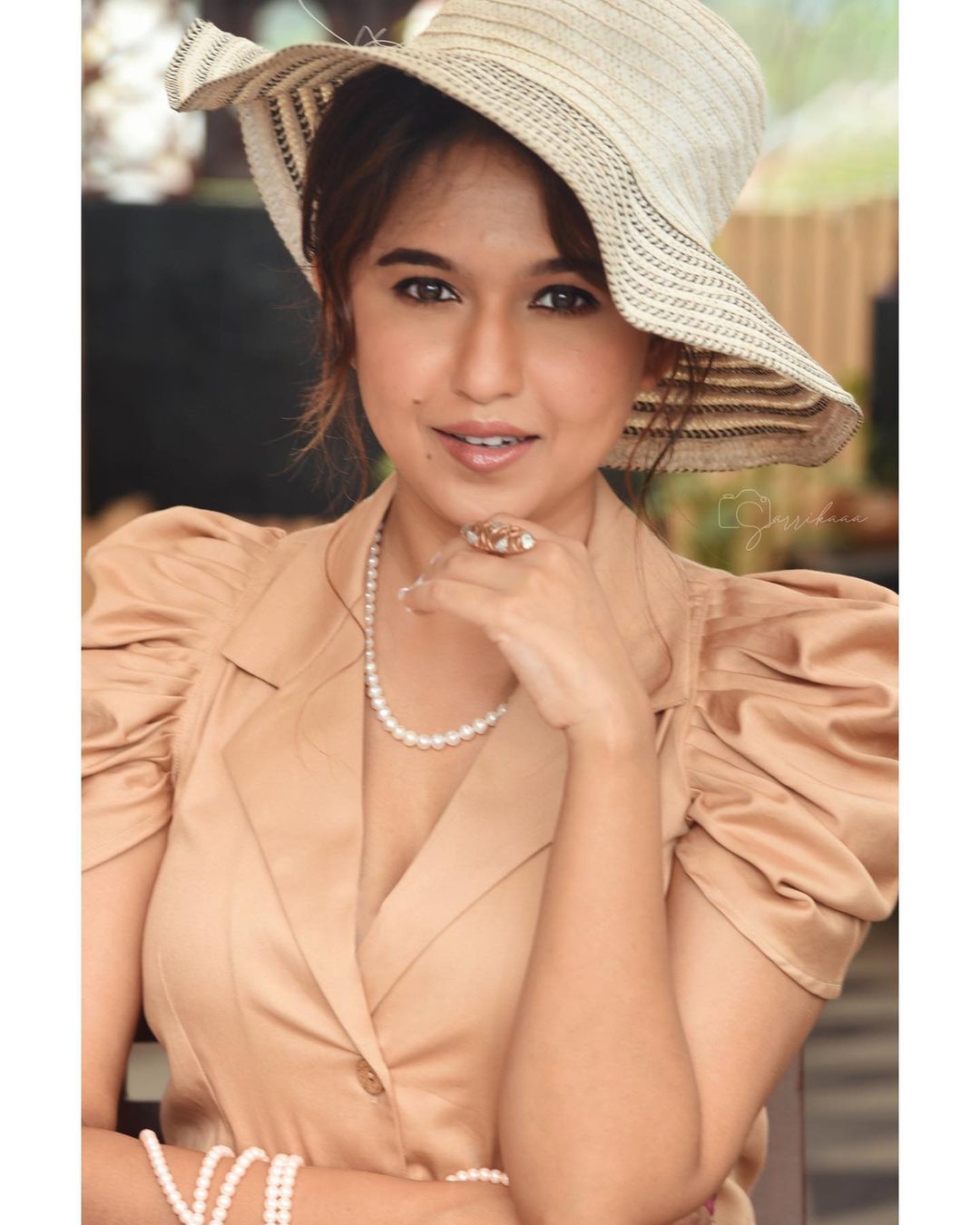 यामध्ये गौतमी देशपांडेने क्रीम कलरचा वेस्टर्न ड्रेस परिधान केला आहे. तसेच डोक्यावर गोल हॅट चढवली आहे. गळ्यात सुंदर मोत्याची माळही घातली आहे. तिचा हा लूक हुबेहूब ब्रिटनच्या राणीची आठवण करून देत आहे.