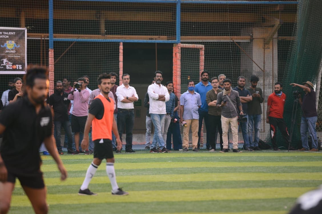 दिग्दर्शक नागराज मंजुळे यांनीही फुटबॉल सामन्यादरम्यान 'झुंड'च्या टीमसोबत फोटोशूट केलं. या चित्रपटाचे निर्माते संदीप सिंह फुटबॉल सामना पाहण्यासाठी आले होते.