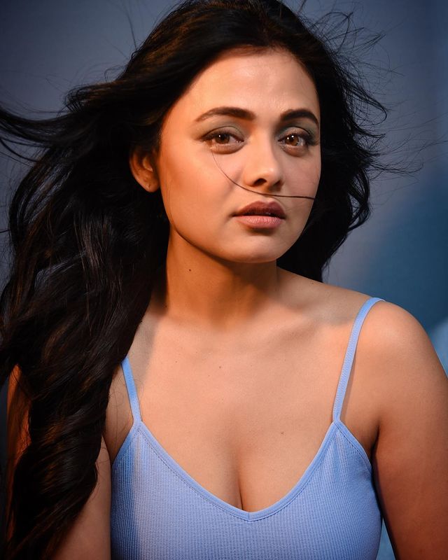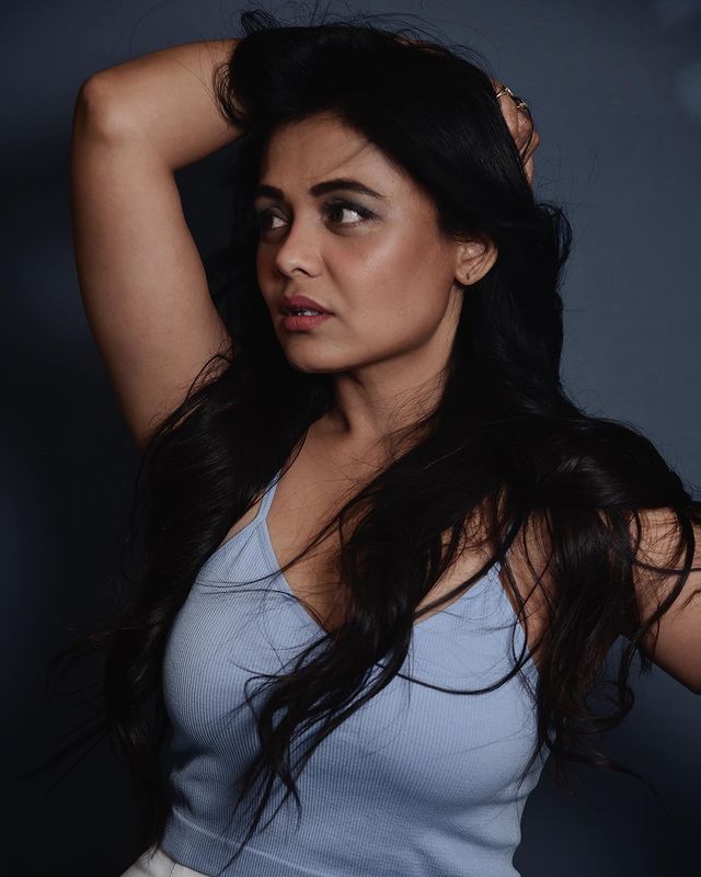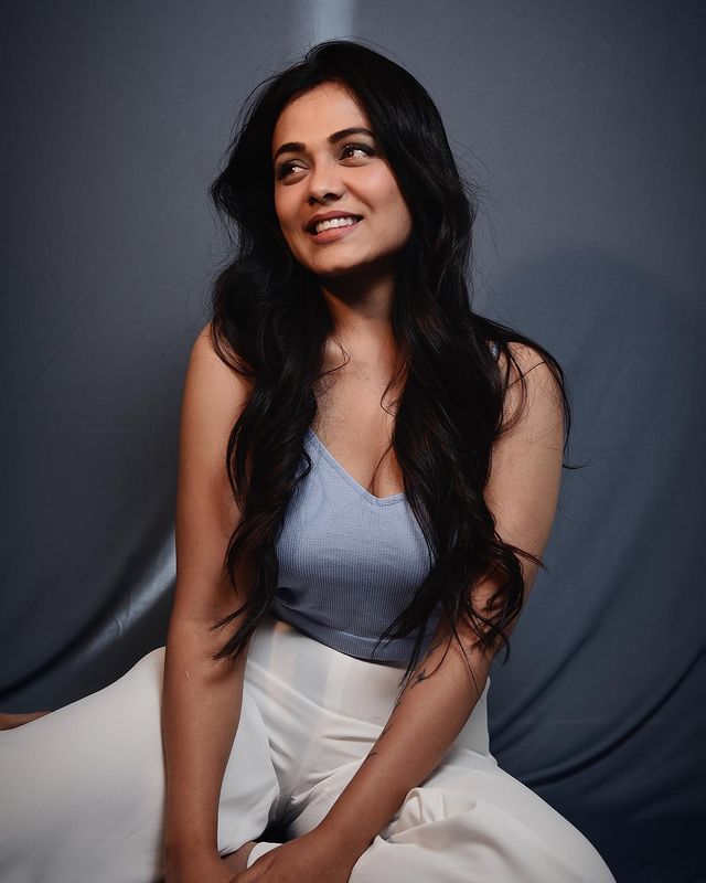 व्हाइट स्कर्ट आणि ब्लू डिप नेक टॉपमध्ये प्रार्थना कमालीची बोल्ड आणि ग्लॅमरस दिसतेय.