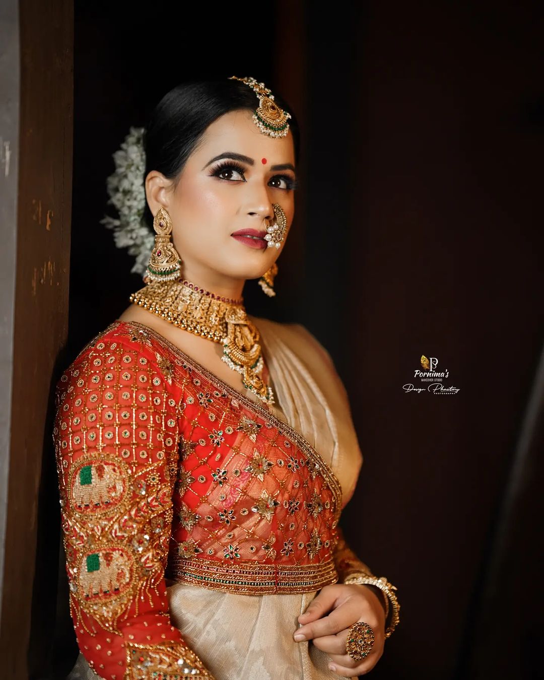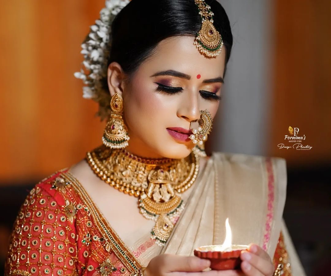 भरजरी साडीवर अशी एकादी नथ व कपाळी चंद्रकोर लावल्याने सुंदरतेमध्ये अधिक भर पडते.
