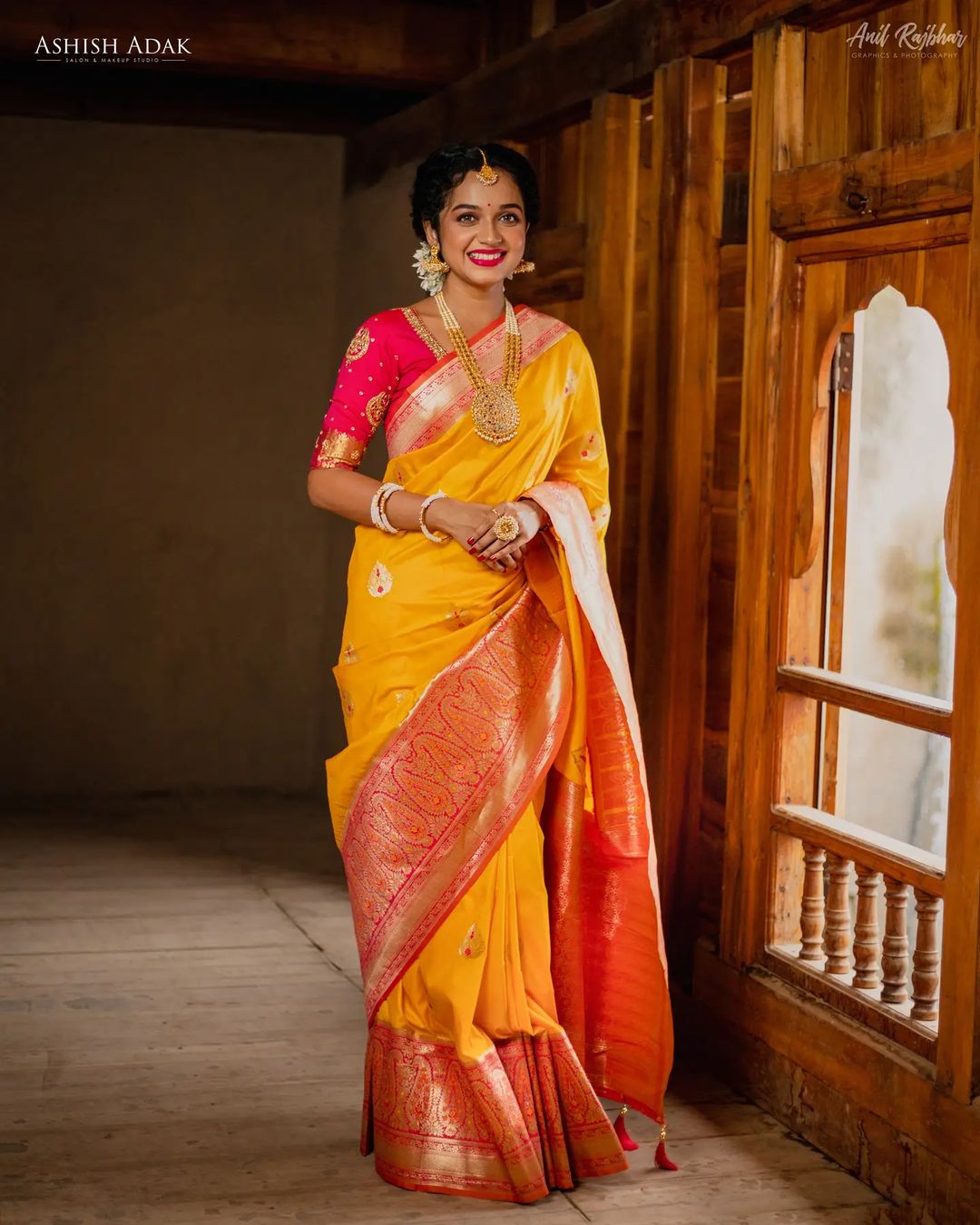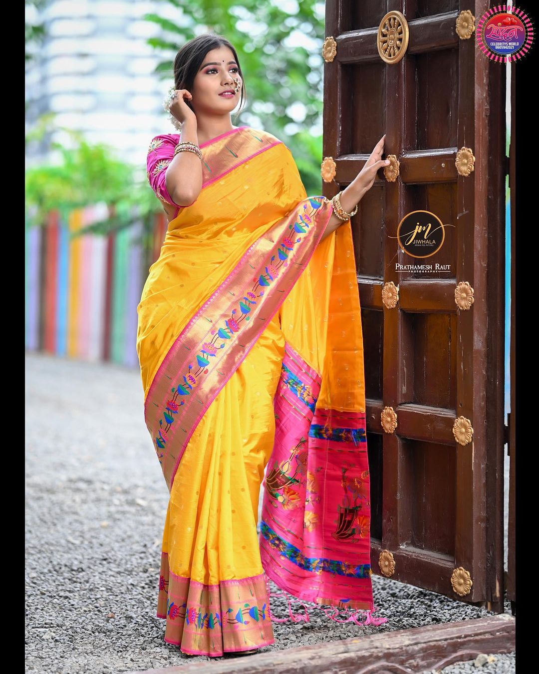 सर्वांची लाडकी डिंपल म्हणजे अभिनेत्री अस्मिता देशमुख हिने देखील पिवळ्या रंगाच्या साडीत फोटोशूट केले आहे.