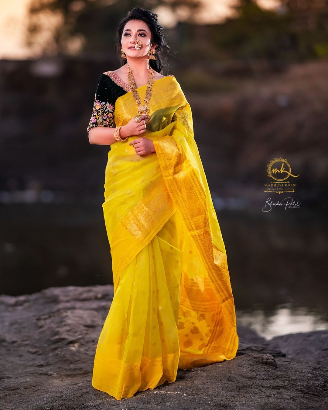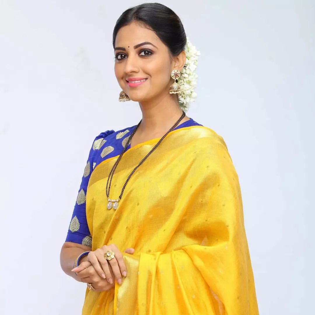 'सहकुटुंब सहपरिवार' या मालिकेतील अभिनेत्री नंदिता पाटकर हिने देखील पिवळ्या रंगाच्या साडीतील फोटो शेअर केला आहे.
