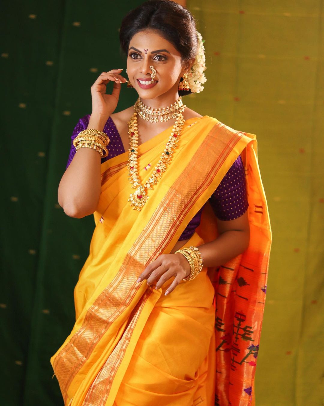 मराठमोळी अभिनेत्री रश्मी अनपट हिने देखील पिवळ्या रंगाच्या साडीत काही फोटो शेअर करत सर्वांना नवरात्रीच्या शुभेच्छा दिल्या आहेत.