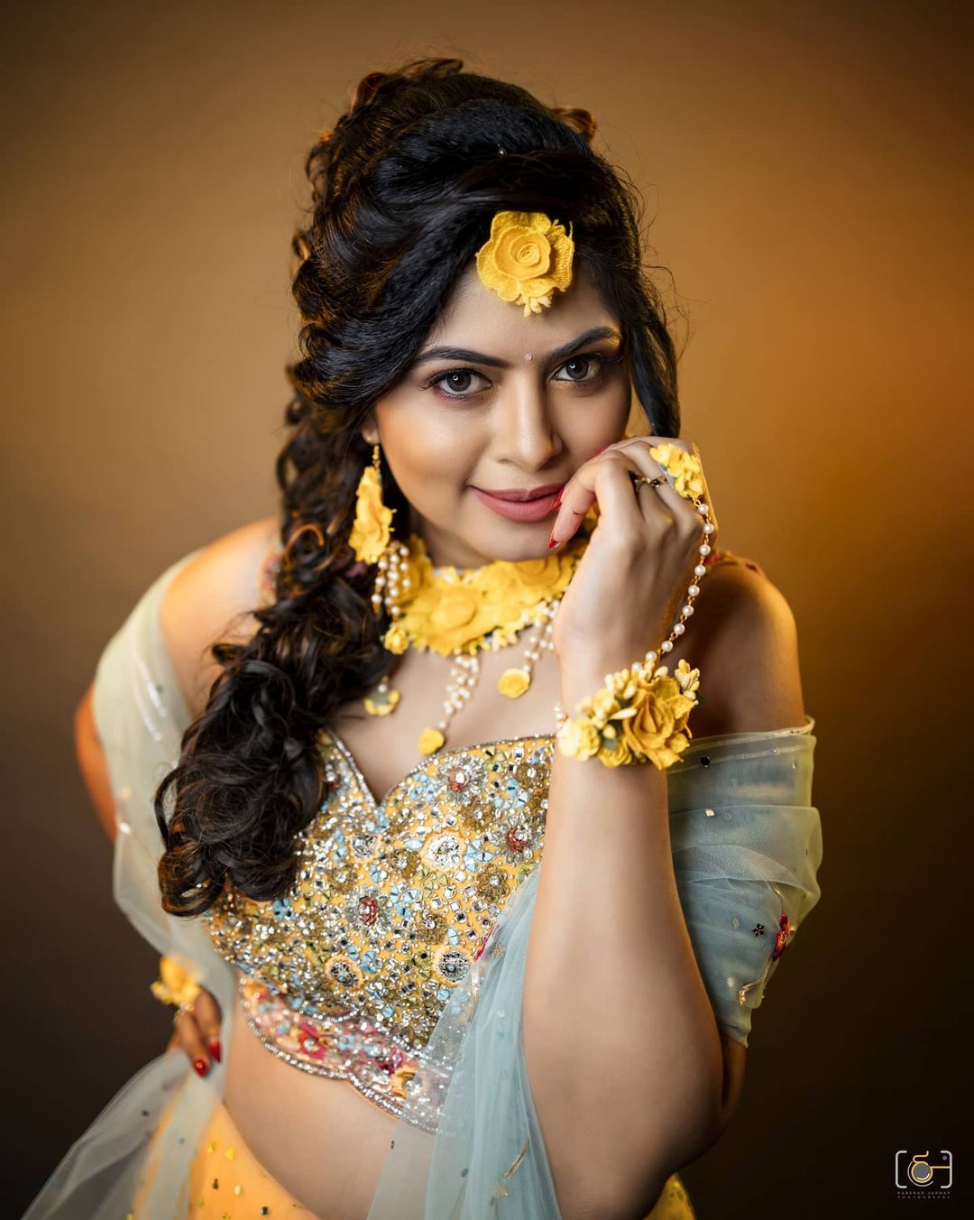 डॉ. डॉन फेम अभिनेत्री श्वेता शिंदेने देखील पिवळ्या रंगाचे फुलाचे दागिने घालून हटके फोटोशूट केलं आहे.