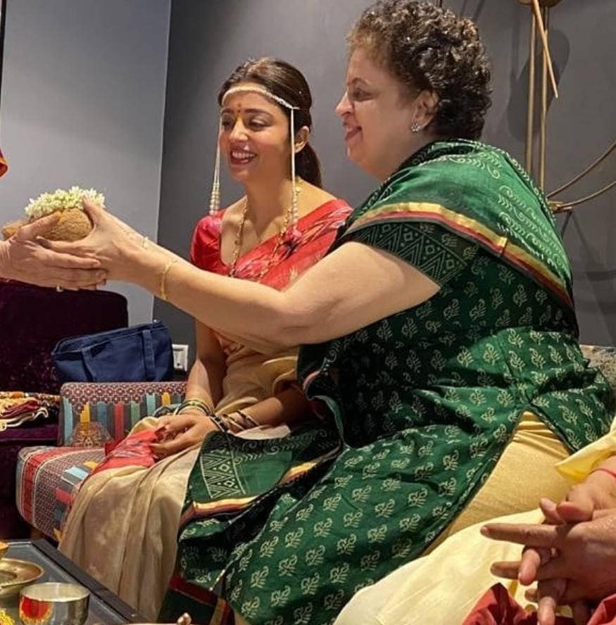 दुसऱ्या एका फोटोमध्ये गुरुजींनी सांगितल्याप्रमाणं पूजा करताना दिसत आहे. यावेळी तिच्या चेहऱ्यावरचा आनंद ती खूप खूश असल्याचं सांगून जात आहे.