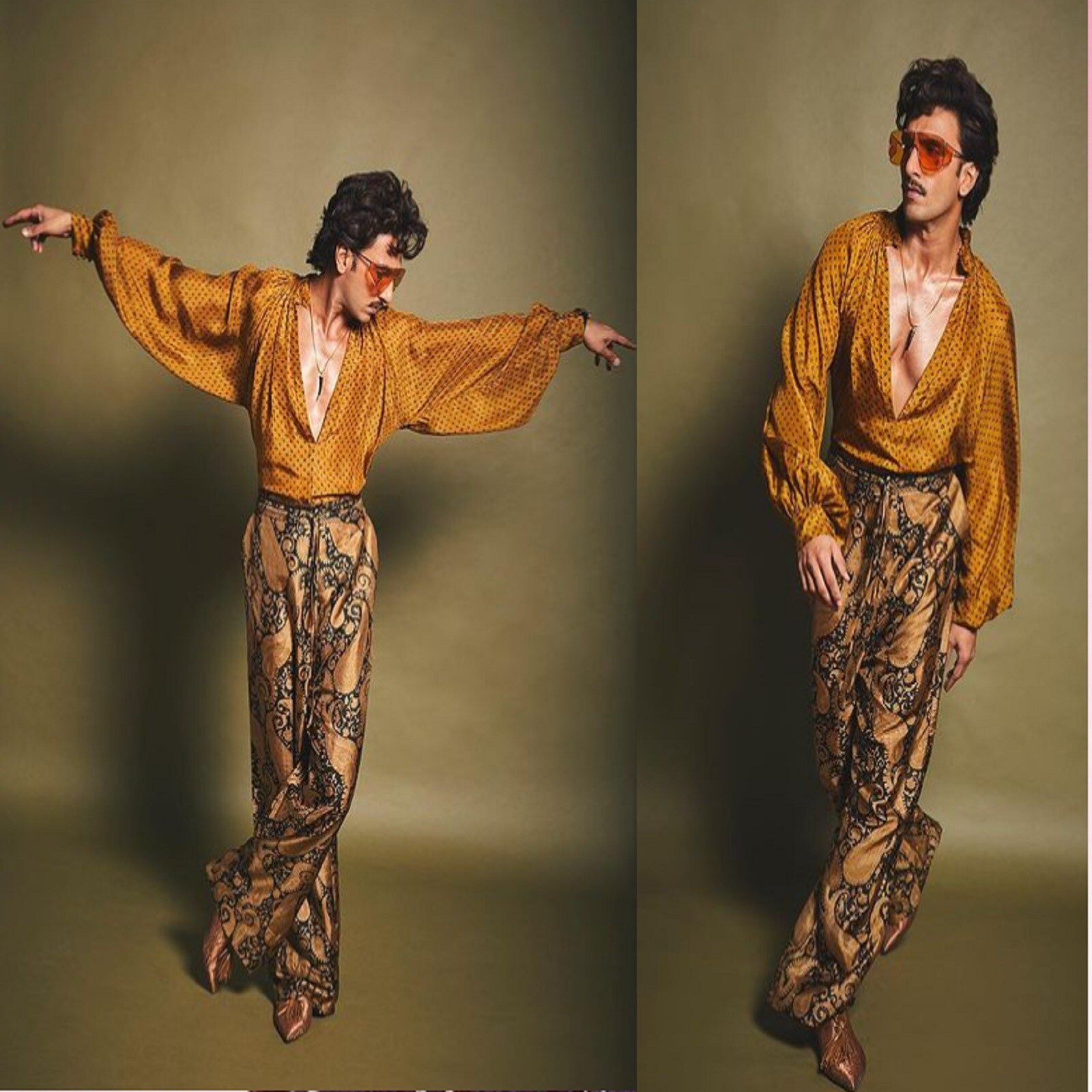 जेव्हा विचित्र फॅशन स्टाईलची चर्चा होते. तेव्हा यामध्ये सर्वात वर नाव अभिनेता रणवीर सिंगचं येतं. रणवीर नेहमीच अशा अतरंगी फॅशनमुळे चर्चेत असतो. पोल्का डॉट शर्ट आणि त्यावर ग्लिटरी स्ट्रिप्ड ट्राऊझर फक्त रणवीरच घालू शकतो.