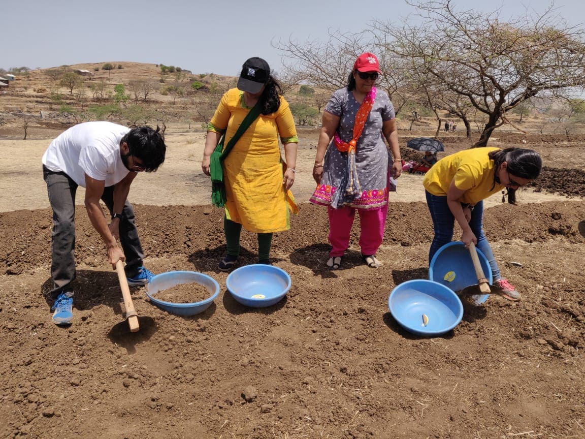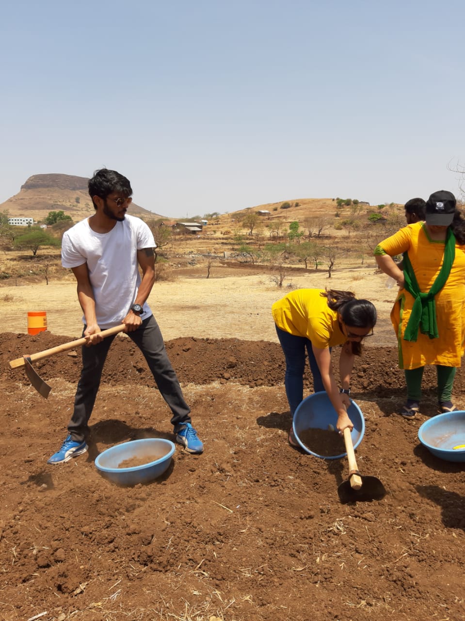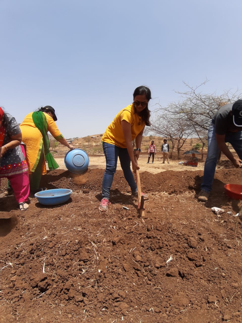 सिन्नर तालूक्यातील धोंडीबार गावात पानी फाउंडेशनसाठी दिग्दर्शक रवी जाधव, पत्नी मेघना जाधव आणि अभिनेता भारत गणेशपुरे यांनी श्रमदान केलं.