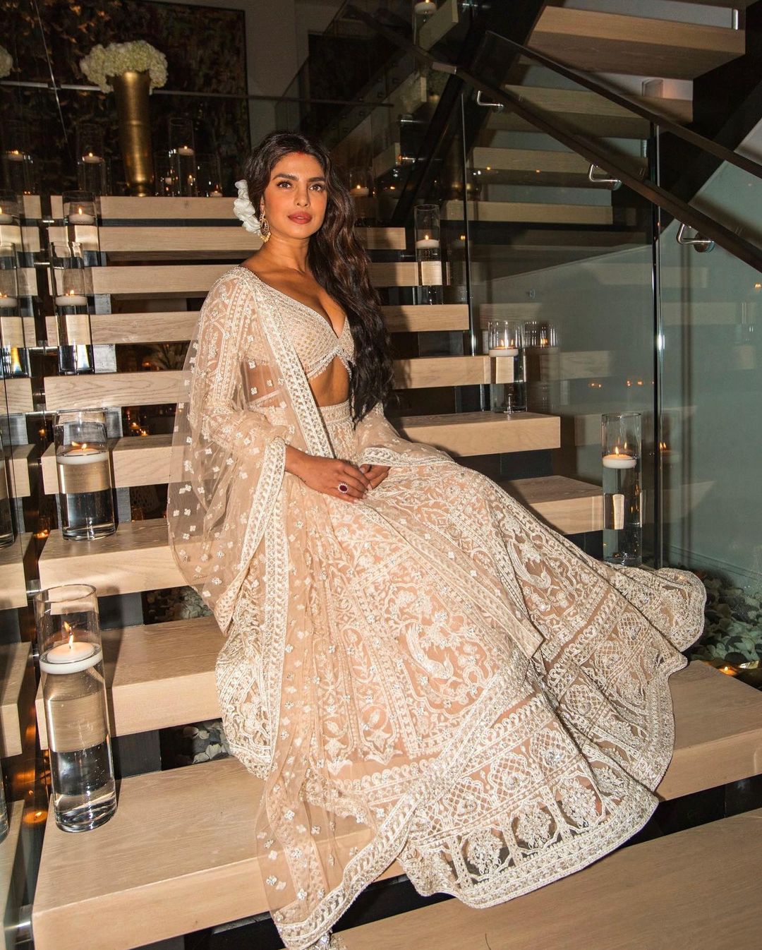 प्रियांका चोप्राने दिवाळी पार्टीत डिझायनर्स फाल्गुनी आणि शेन पीकॉक यांनी डिझाइन केलेला सुंदर लेहेंगा परिधान केला होता.