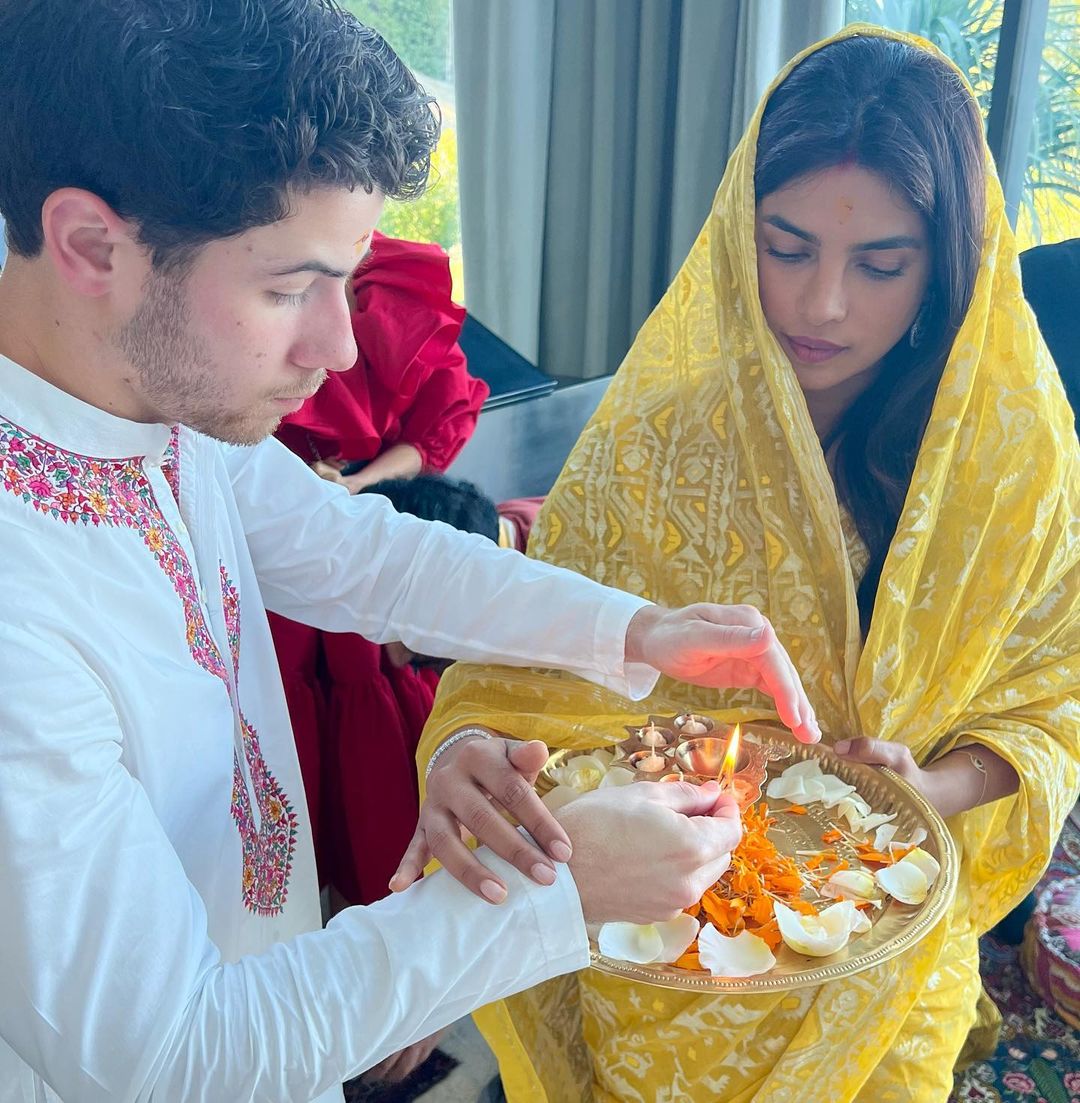 फोटो शेअर करत प्रियांकाने लिहिले की, 'आमची पहिली दिवाळी एकत्र आमच्या पहिल्या घरात. ते नेहमीच खास असेल. आजची संध्याकाळ इतकी खास बनवण्यासाठी परिश्रम घेतलेल्या प्रत्येकाचे आभार.'
