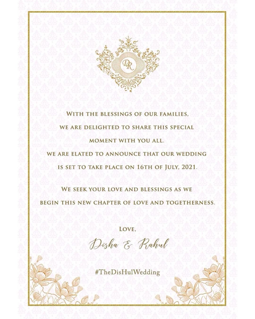 राहुलने सोशल मीडियावरही जाहीर करत त्याच्या लग्नाची बातमी दिली आहे.