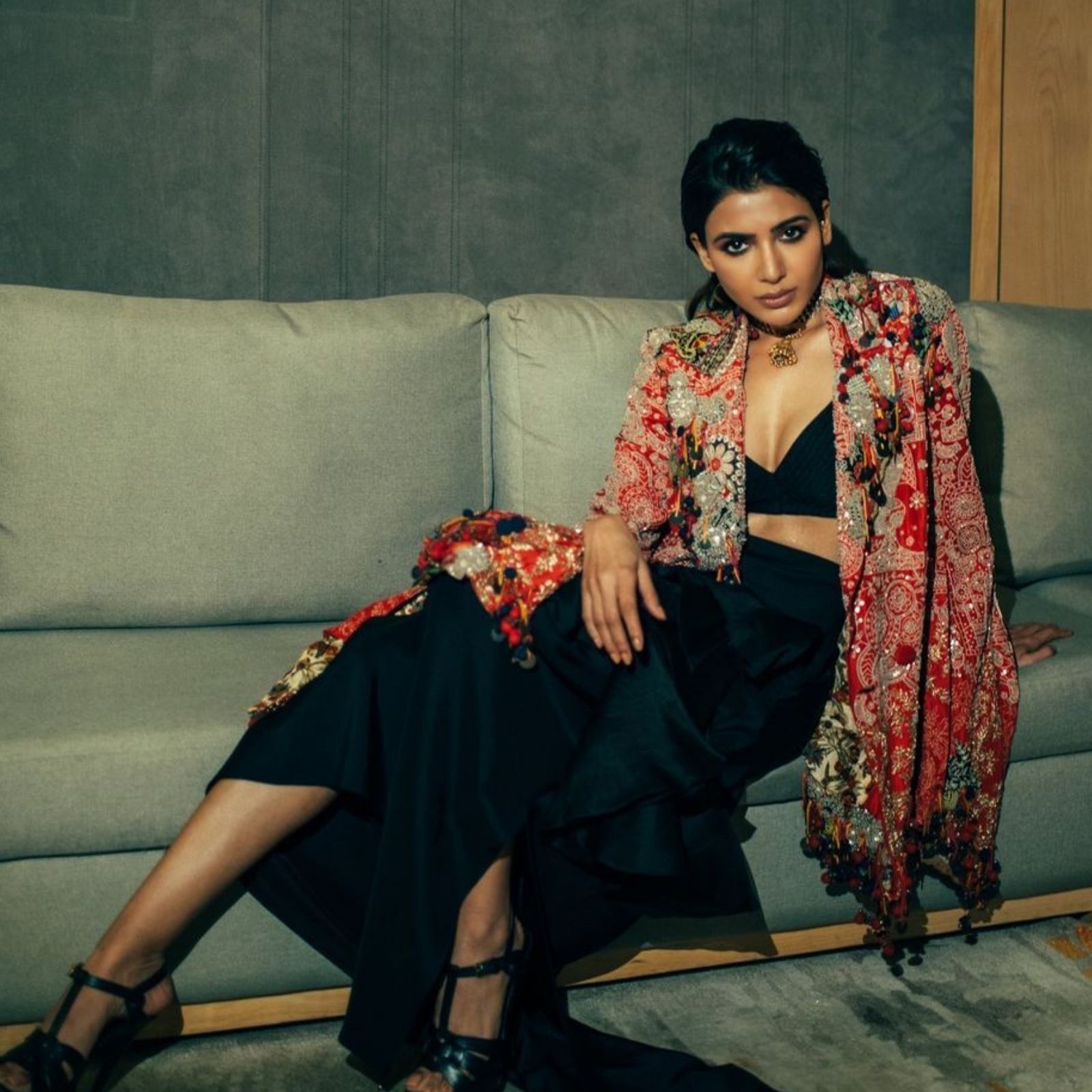 लाल जॅकेट आणि स्मोकी आय मेकअपमध्ये समंथा अप्रतिम दिसत आहे. या फॅशन डिवा घातलेला चोकर तिला आणखी ट्रेंडी लुक देत आहे.