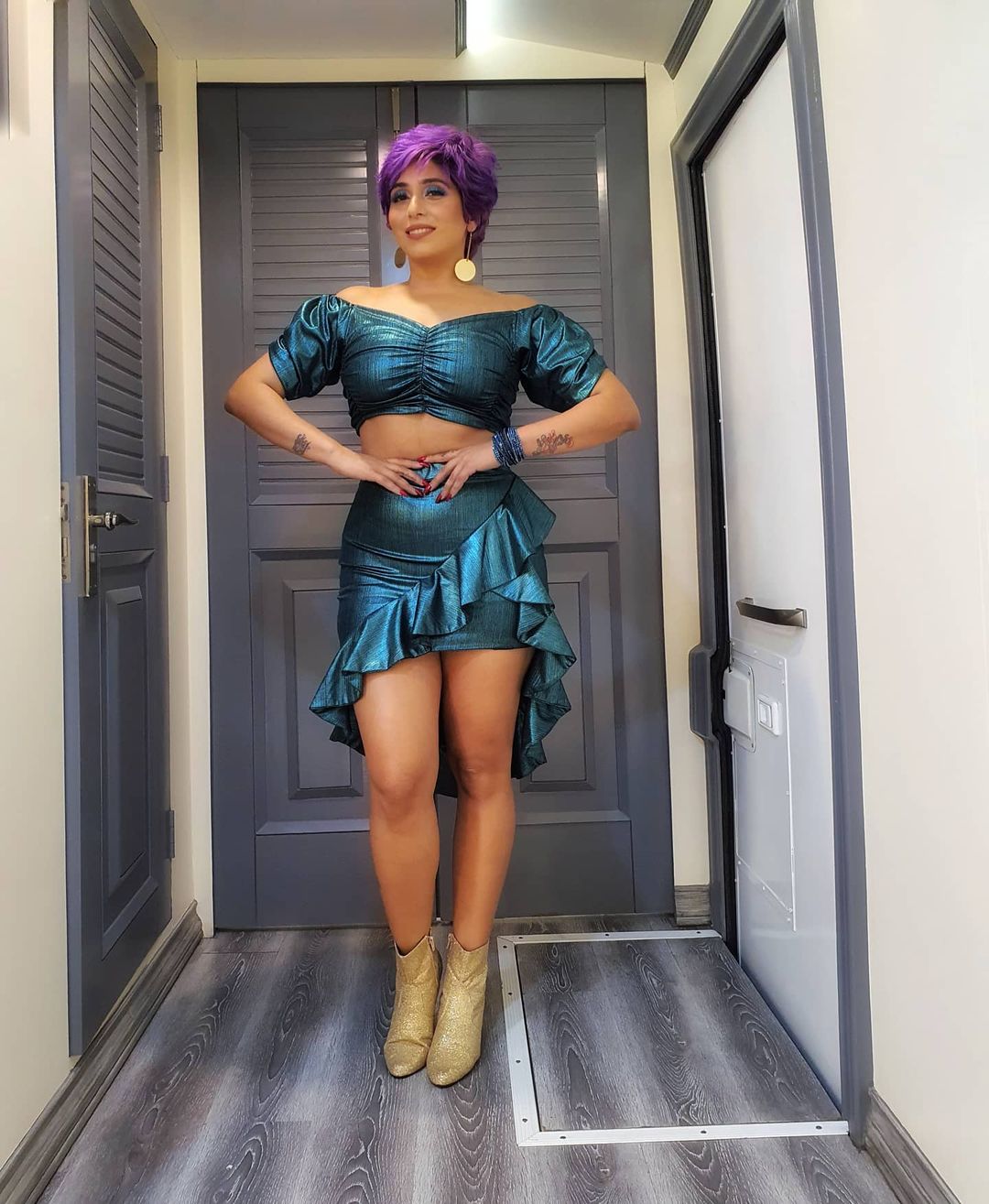 तिला देखील एकदा लहान कपडे घातल्यामुळं लाईव्ह शोदरम्यान स्टेजवरुन धक्का मारुन खाली उतरवलं होतं, असा धक्कादायक अनुभव तिनं सांगितला. (Neha Bhasin/Instagram)