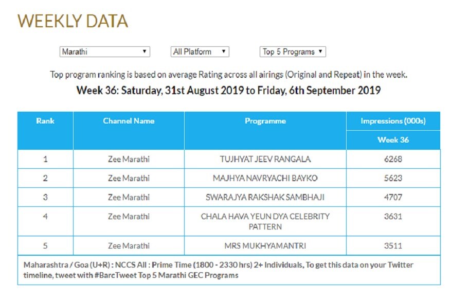 दर वेळेप्रमाणे टीआरपी रेटिंग समोर आलंय. झी मराठीवर नव्या मालिका सुरू झाल्यात. कलर्स मराठीवरच्या स्वामिनी मालिकेचा प्रोमो लक्ष वेधून घेतोय. या वेळी कुठल्या मालिकेनं बाजी मारलीय ते पाहू.