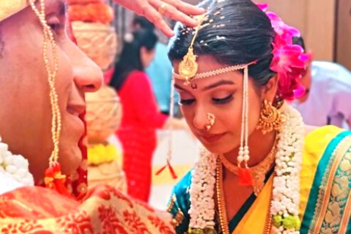 पिवळी साडी त्याला निळी काठ आणि निळ ब्लाऊज. माथी मुंडावळ्या, नाकात साजीशी नथ, फुलांच्या माळा आणि नातेवाईक मित्रमंडळींच्या उपस्थितीत अमृता आणि नीलच्या डोक्यावर लग्नाच्या अक्षता पडल्या.