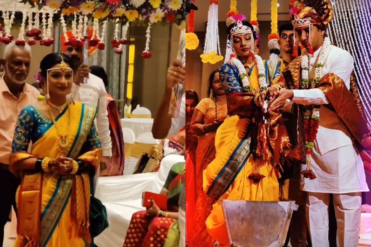 लग्न विधींसाठी अमृतानं खास पारंपरिक पिवळी नऊवारी साडी नेसली होती.