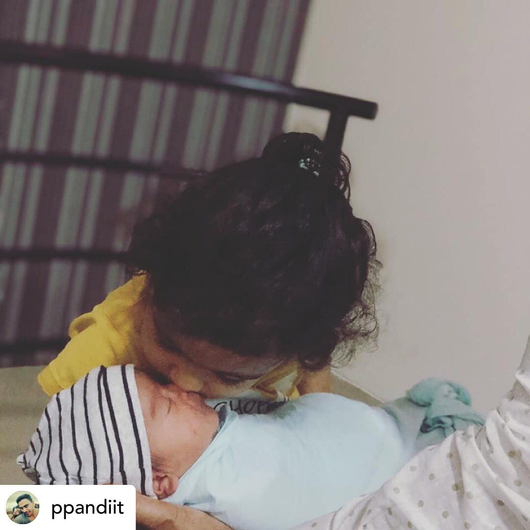 या फोटोंमध्ये पूजाची मोठी मुलगी वियाना आणि नवजात बालक दिसत आहे. लहानगी वियानी आपल्या छोट्या बहिणीला मांडीवर घेऊन तिचे लाड करताना दिसत आहे.