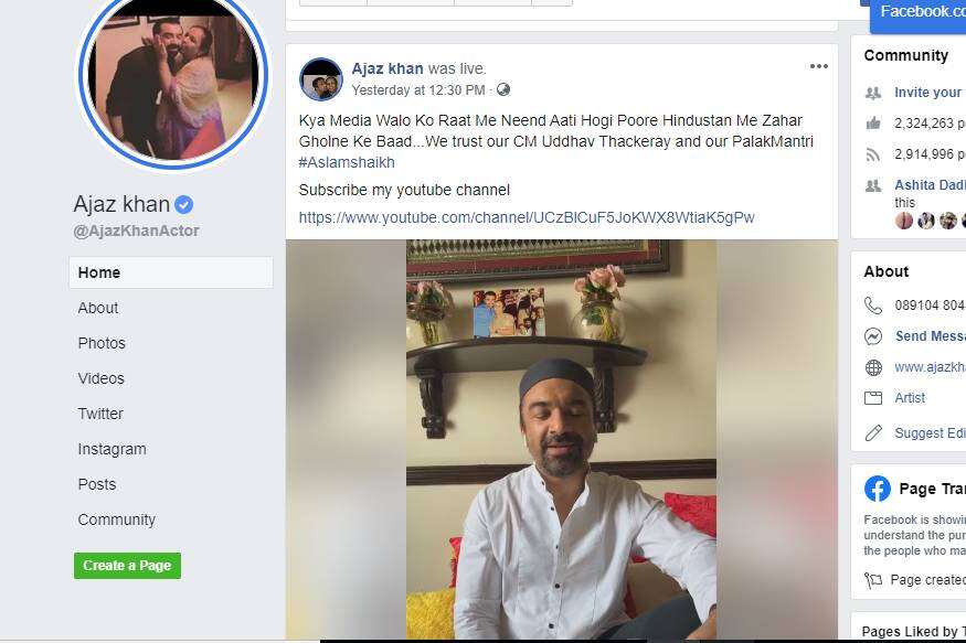 एजाज खाननं 15 एप्रिलला रात्री 12.30 ला फेसबुक लाइव्ह केलं होतं. यावेळी तो या विषयावर बोलला आहे. या लाइव्ह व्हिडीओमध्ये एजाज खान म्हणाला, मुंगी मेली मुस्लीम जबाबदार, हत्ती मेला मुस्लीम जबाबदार, दिल्लीत भूकंप झाला मुस्लीम जबाबदार म्हणजे देशातल्या प्रत्येक गोष्टीसाठी मुस्लीमांना जबाबदार ठरवलं जातं. मात्र हा बनाव रचला जात आहे. याचा विचार तुम्ही कधी केला आहे का? हा व्हिडीओमध्ये एजाज खाननं या सर्व गोष्टींसाठी एका राजकीय पार्टीला जबाबदार ठरवलं आहे.